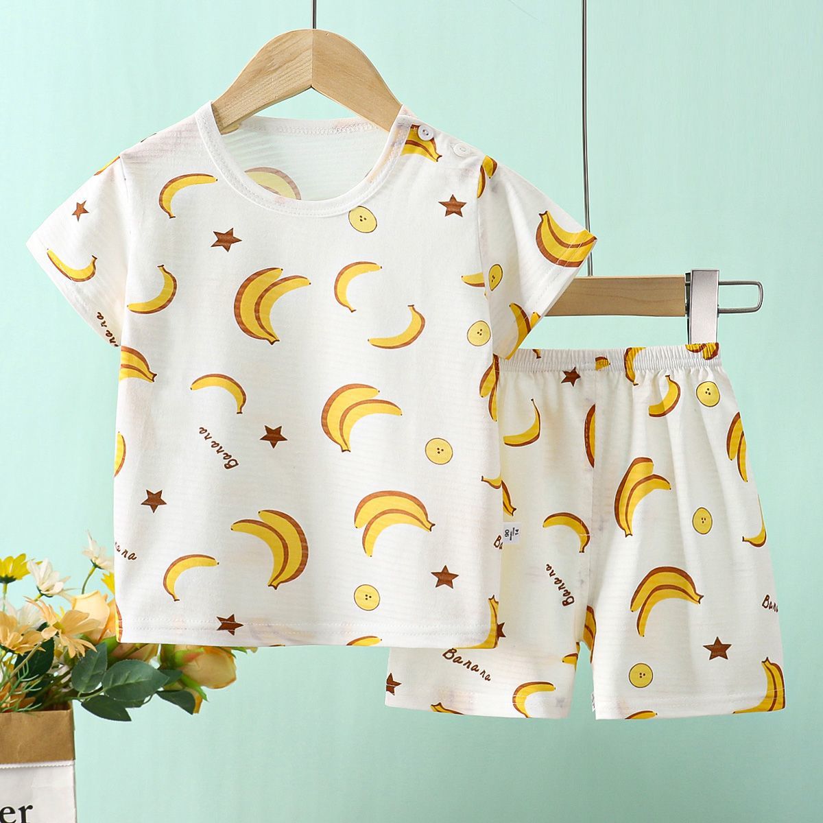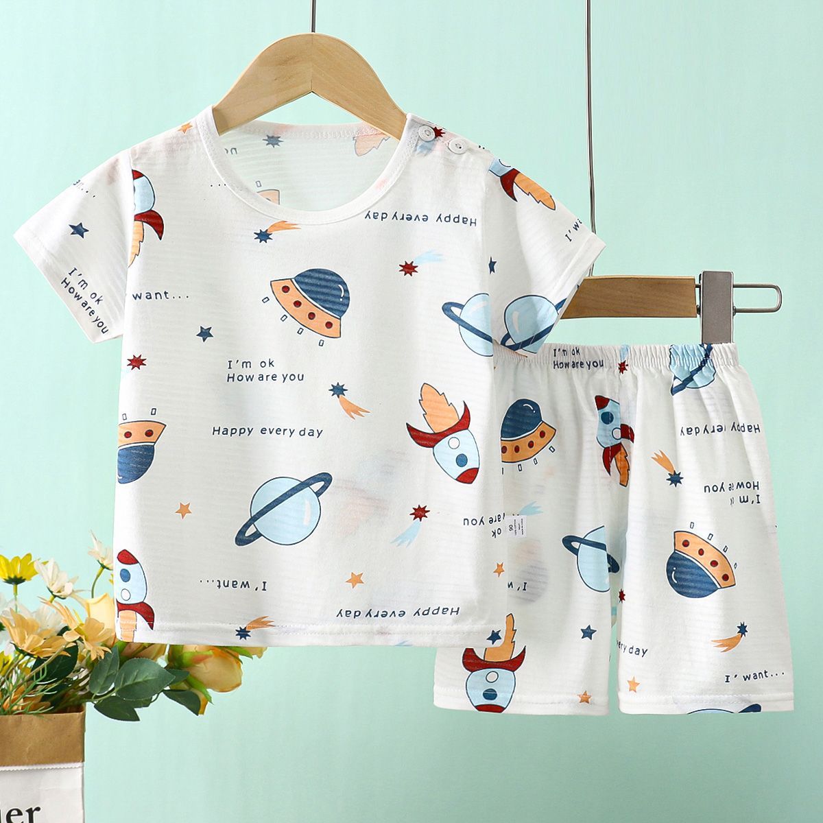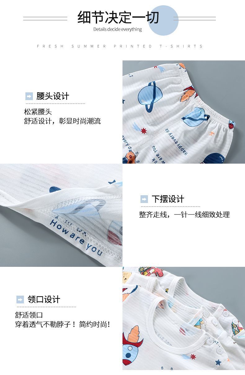 아동용 반팔 양복, 여름 면 아기 대나무 면 에어컨 의류, 가정복, 소년 소녀 반팔 잠옷스토어 가기