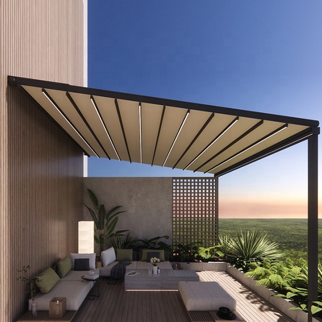 제조업체 전기 접이식 개폐식 차양 야외 레스토랑 캐노피 차양 알루미늄 합금 단열 차양 안뜰 자체