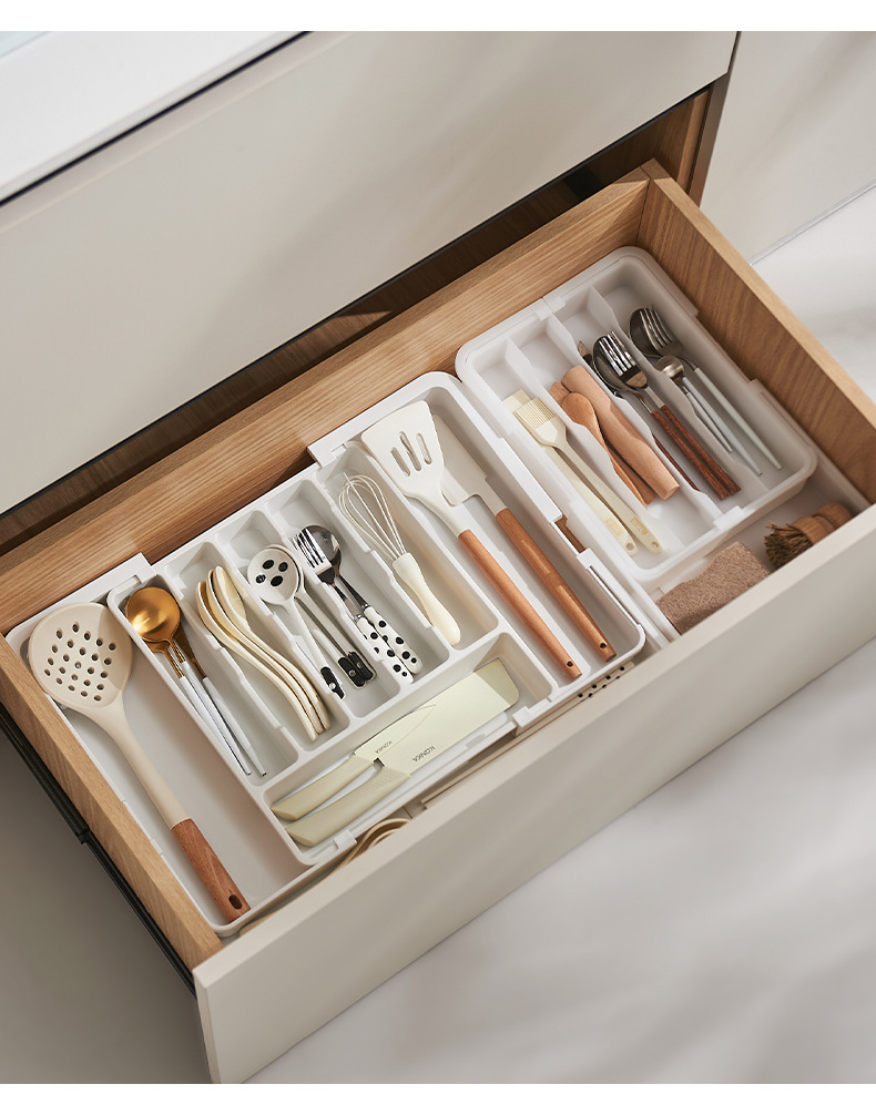• 서랍식 접이식 접시 수납함(칼 홀더 없음) - 화이트