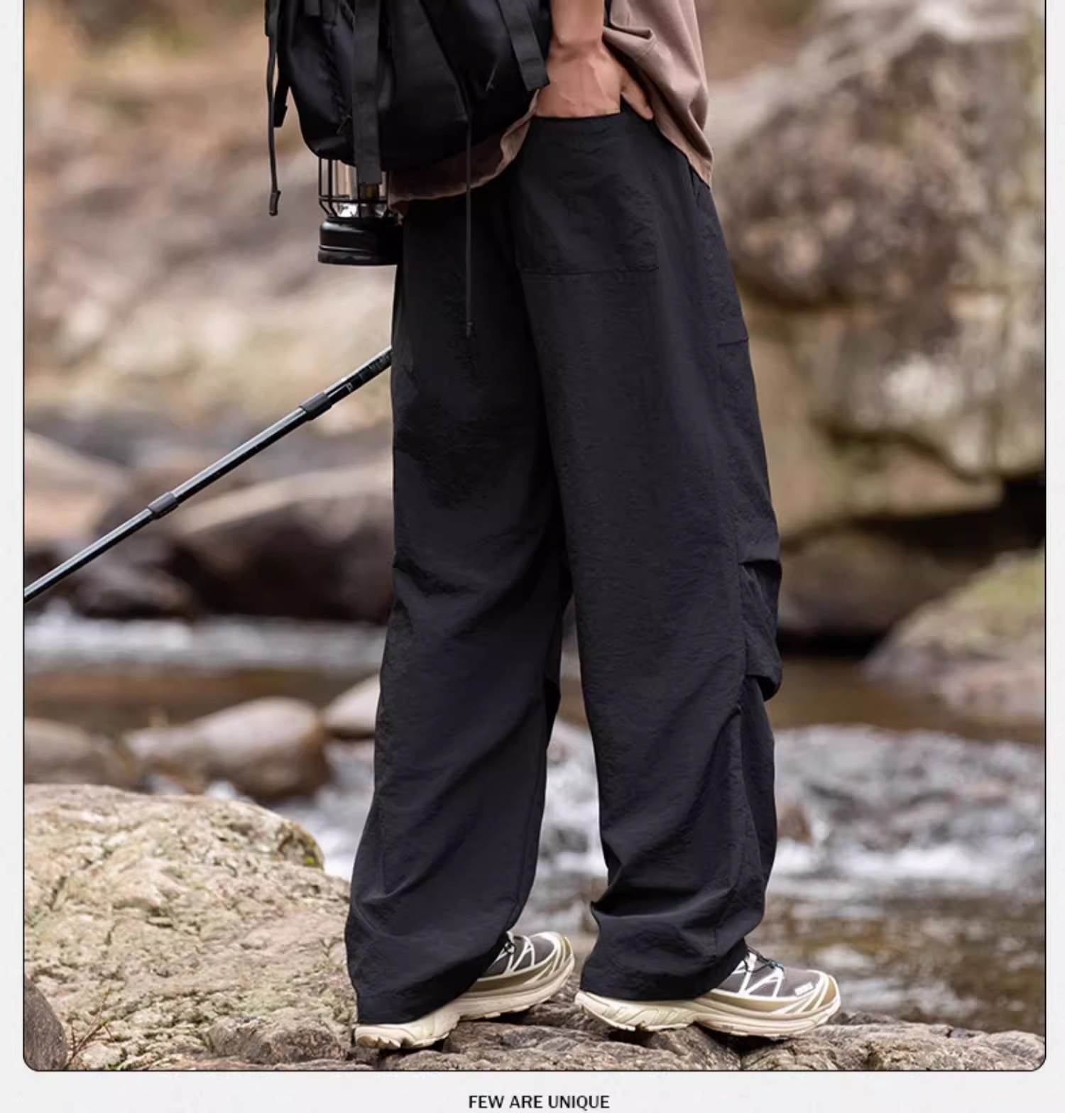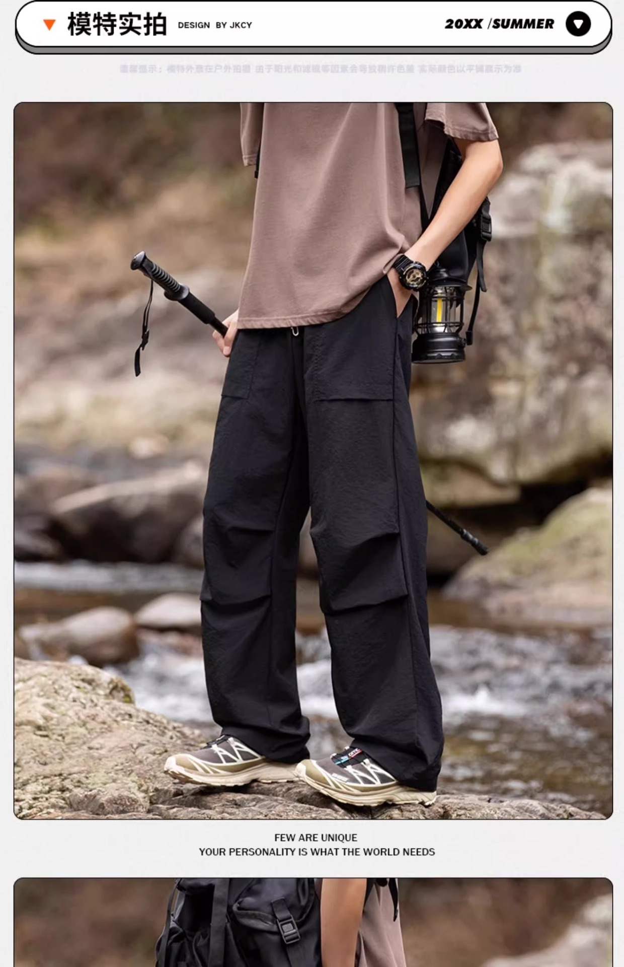 NASA 아이스 실크 속건성 충전 바지 남성 여름 얇은 2025 새로운 루즈 스트레이트 캐주얼 스포츠 작업복 바지