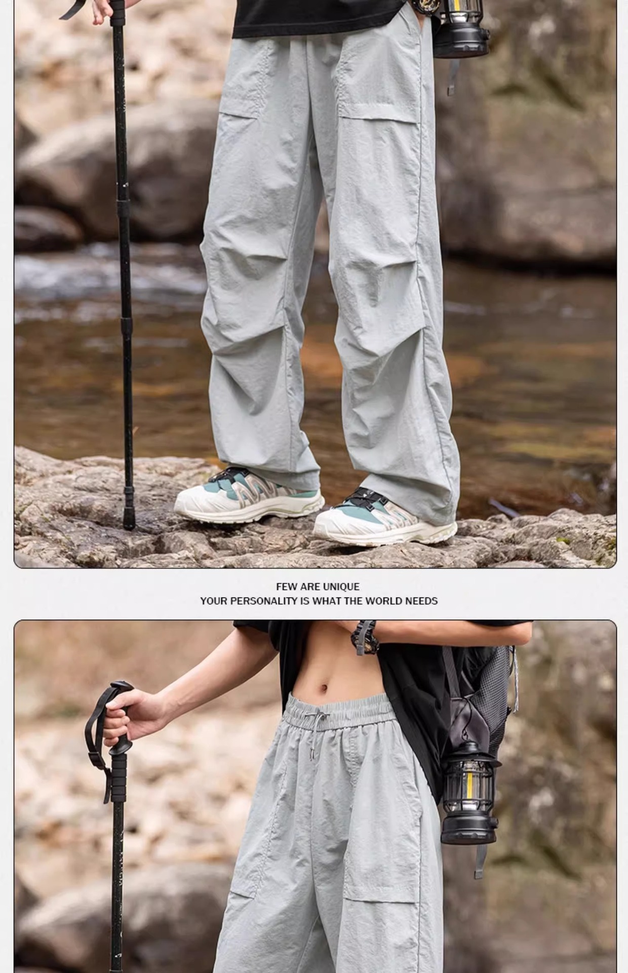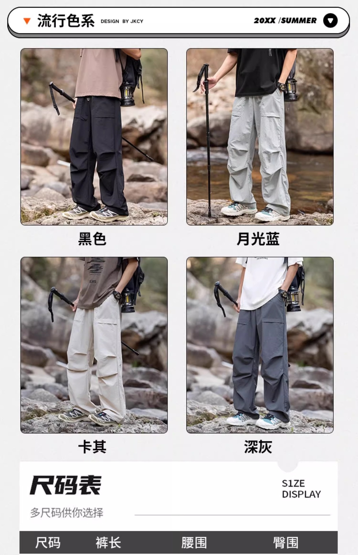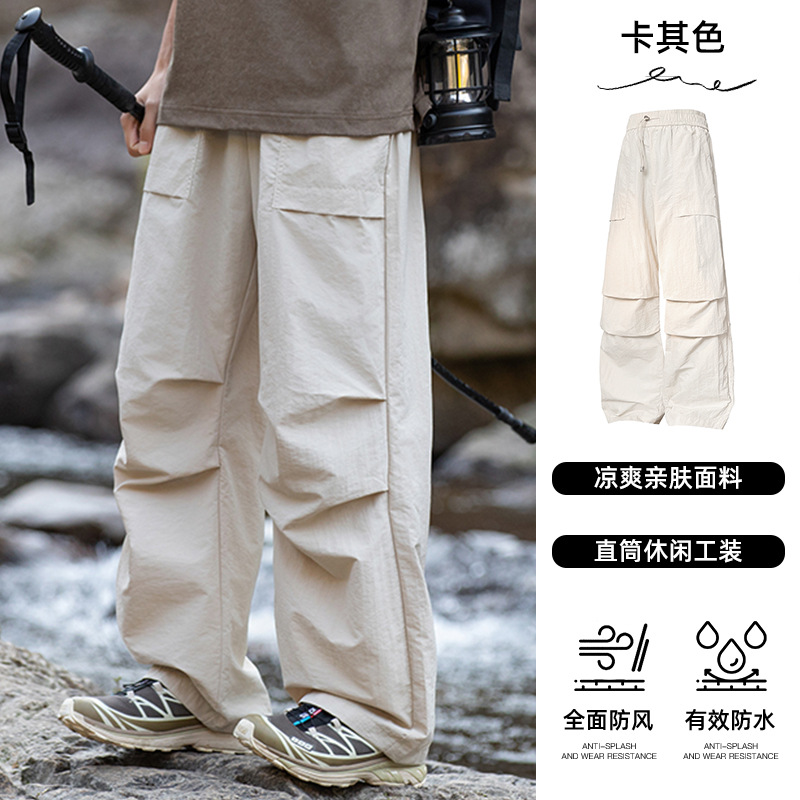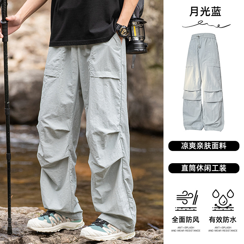 NASA 아이스 실크 속건성 충전 바지 남성 여름 얇은 2025 새로운 루즈 스트레이트 캐주얼 스포츠 작업복 바지스토어 가기