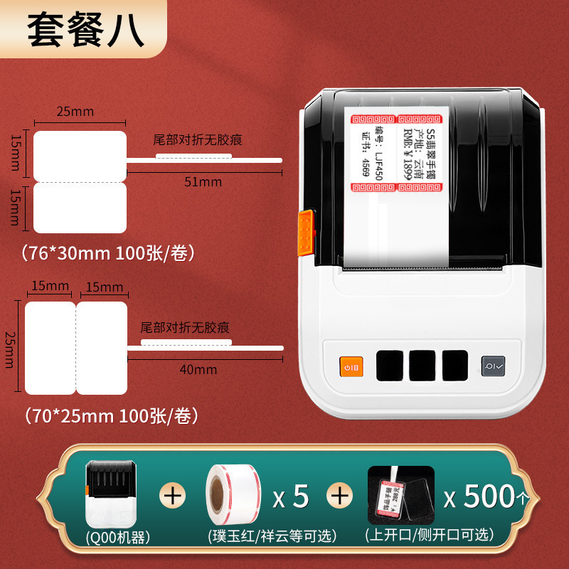 • 패키지 8: 기계 + 라벨 롤 5개 + 라벨 슬리브 500개