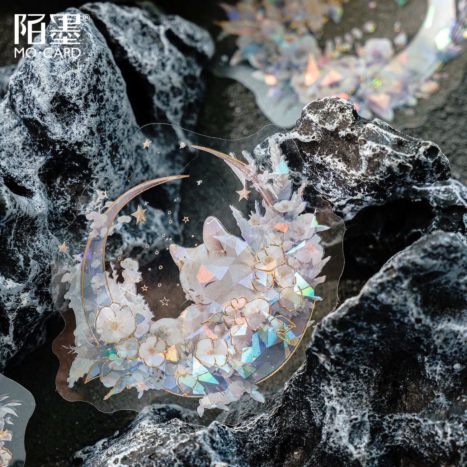 Mo Mo Unbounded Moon White 시리즈 PET 스티커 팩 아이스 크리스탈 쉘 라이트 핸드북 소재 콜라주 베이스 DIY 8 스타일