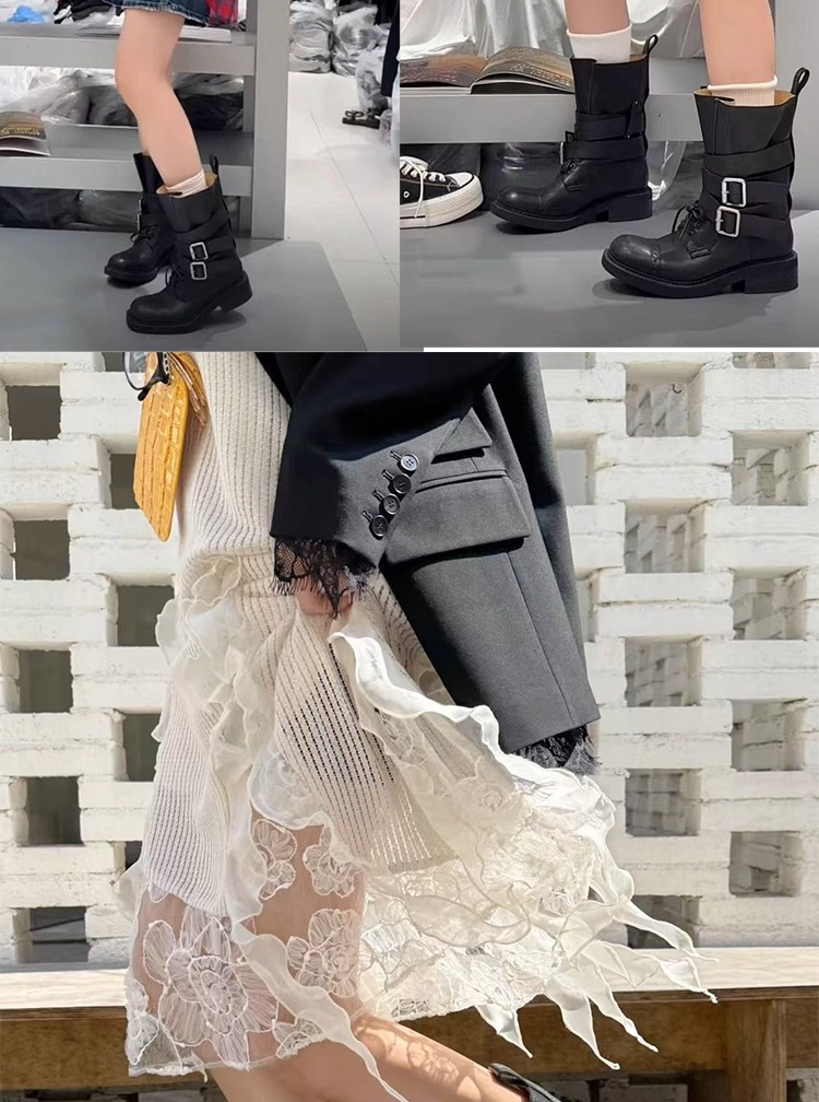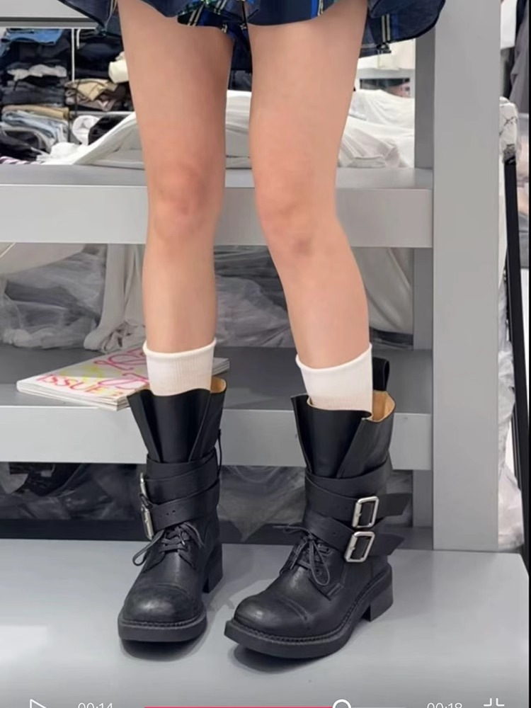 유럽역 2025 신상 레트로 만능 마틴부츠 여성 미드부츠 영국풍 두꺼운 굽 벨트 버클 오토바이 숏부츠스토어 가기