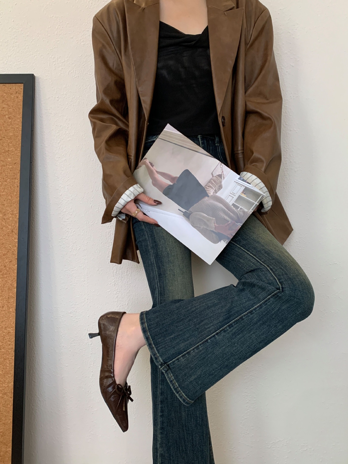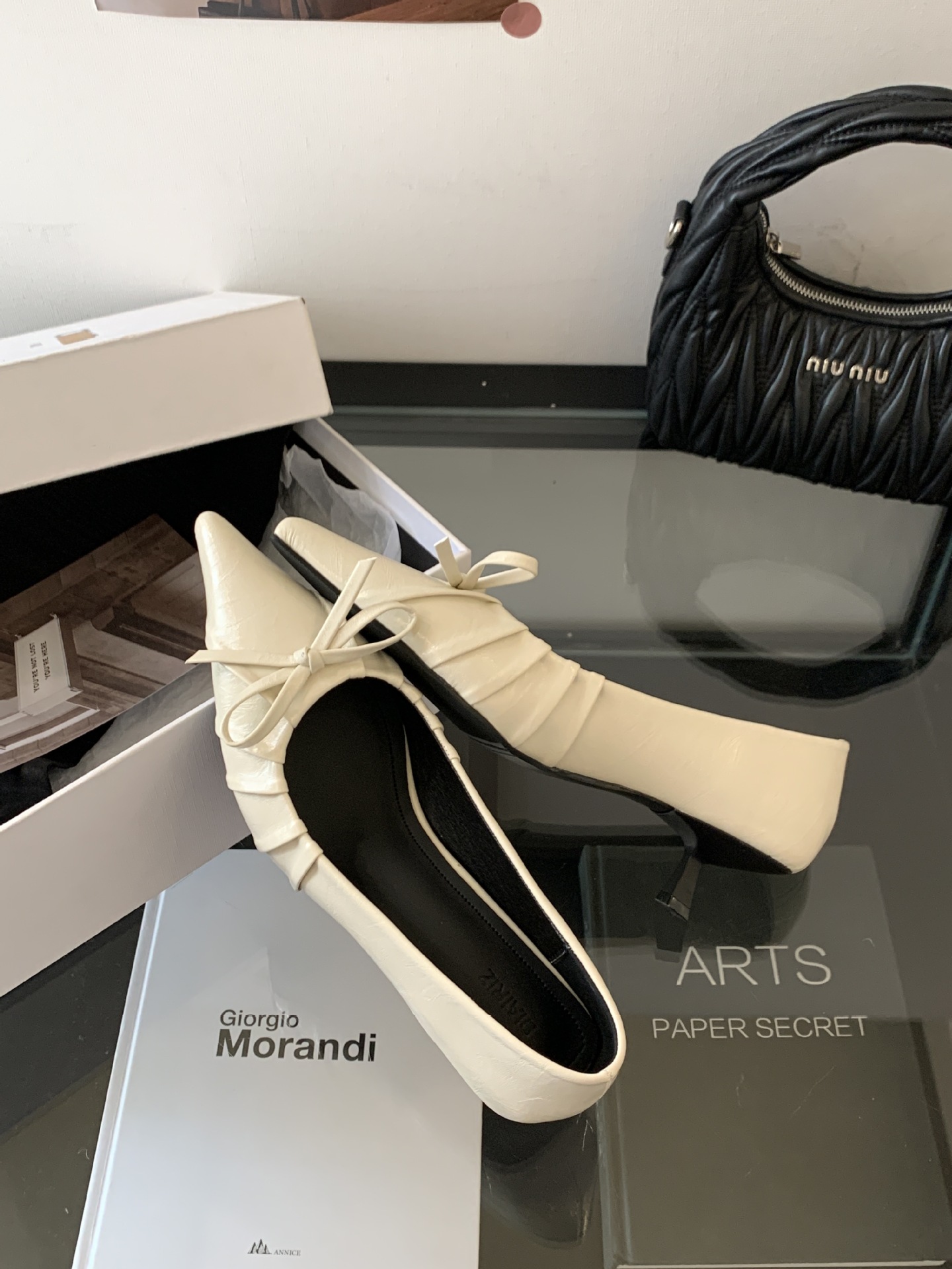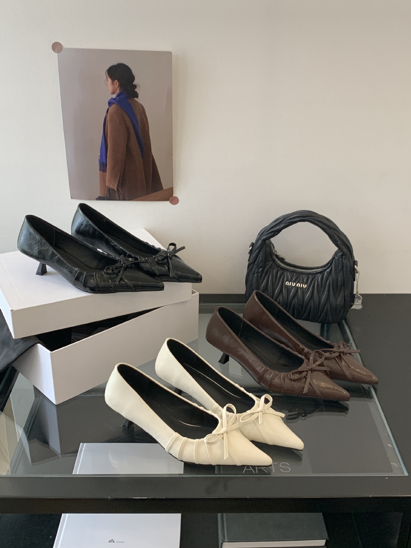 뾰족한 주름 리본 얇은 굽 프렌치 스타일 부드러운 펌프스 캣힐 가을 여성용 대형 통근화스토어 가기
