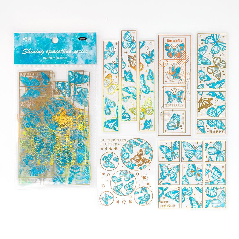 설탕 시대 빛나는 시간과 공간 시리즈 PET 핫 스탬핑 스티커 팩 핸드북 DIY 나비 소재 장식 스티커 10 시트 6 스타일