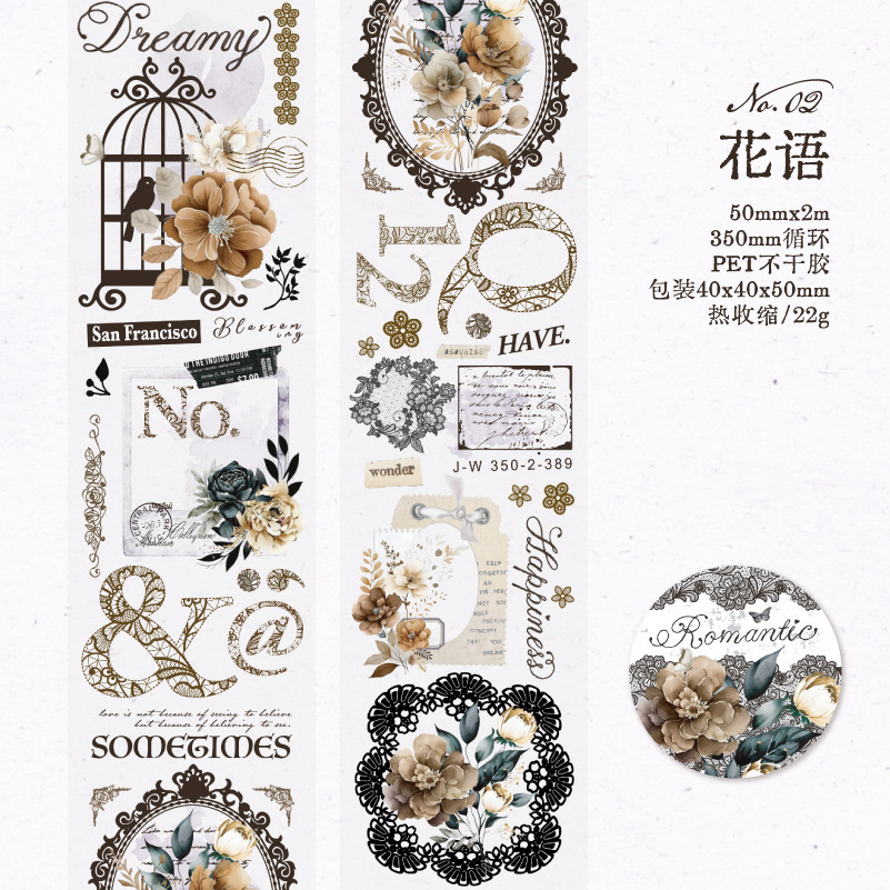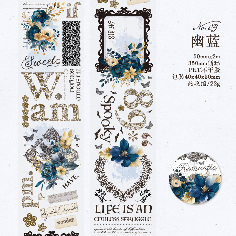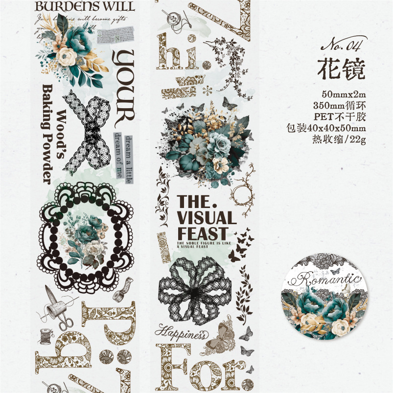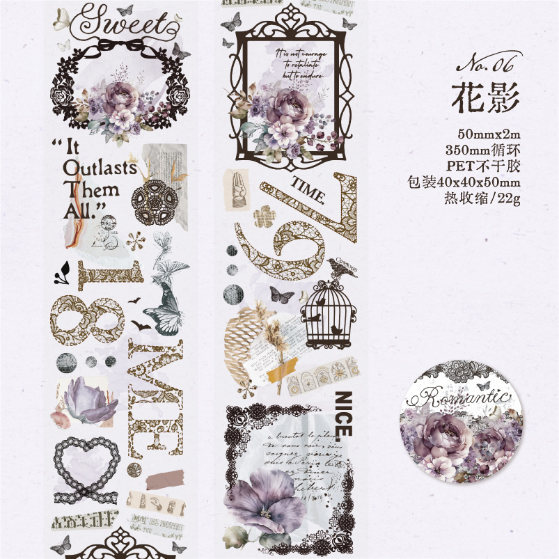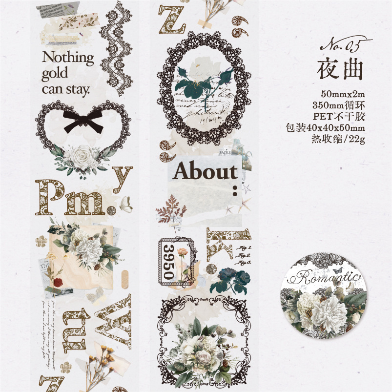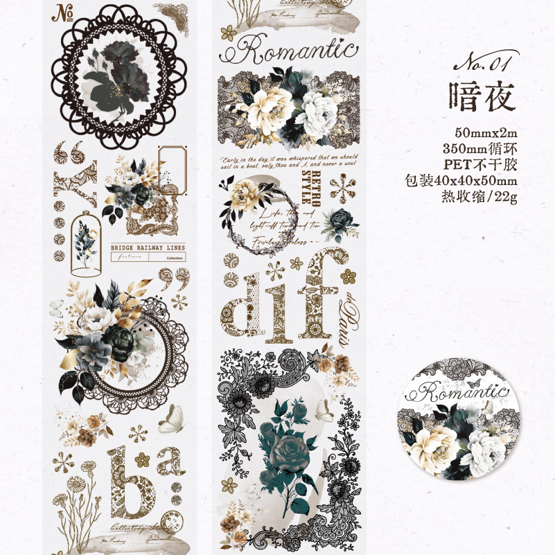 Yanji 레이스 다크 나이트 코르테이 시리즈 PET 테이프 DIY 핸드북 장식 재료 사이클링 스티커 6 가지 옵션