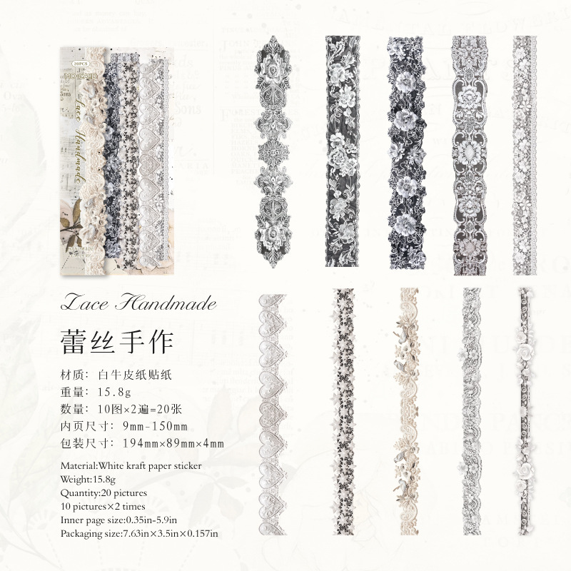 Mo Mo 수제 긴 복도 시리즈 하드 카드 스티커 20 복고풍 긴 수제 DIY 재료 장식 스티커 6 스타일