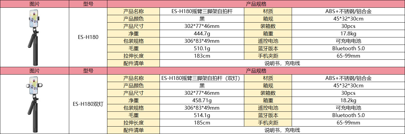• ES-H180 1.8m 알루미늄 합금 삼각대