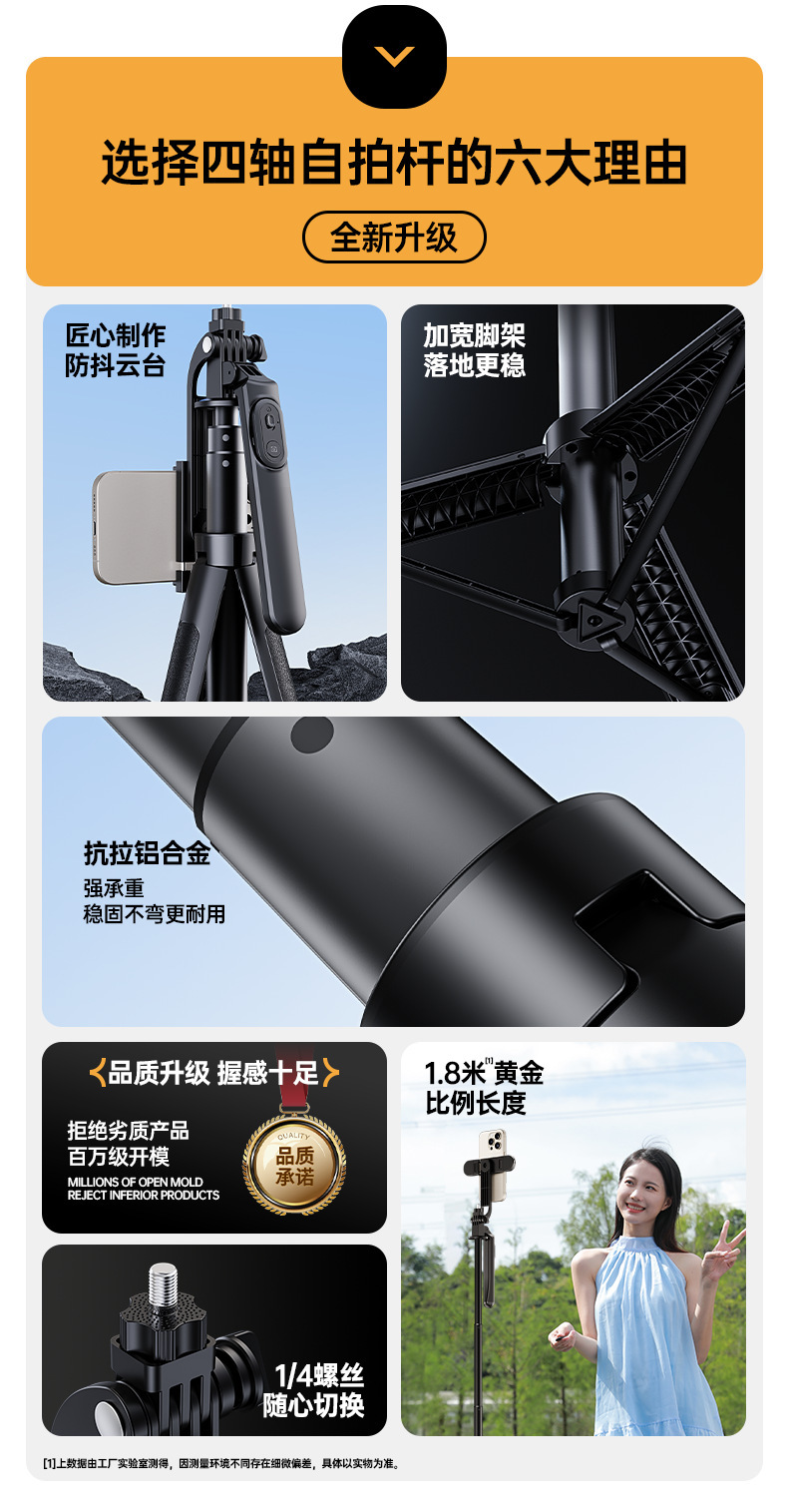 새로운 1.8m 셀카봉 휴대폰 홀더 라이브 방송 플로어 스탠딩 삼각대 휴대폰 범용 손떨림 방지 회전 셀카봉스토어 가기