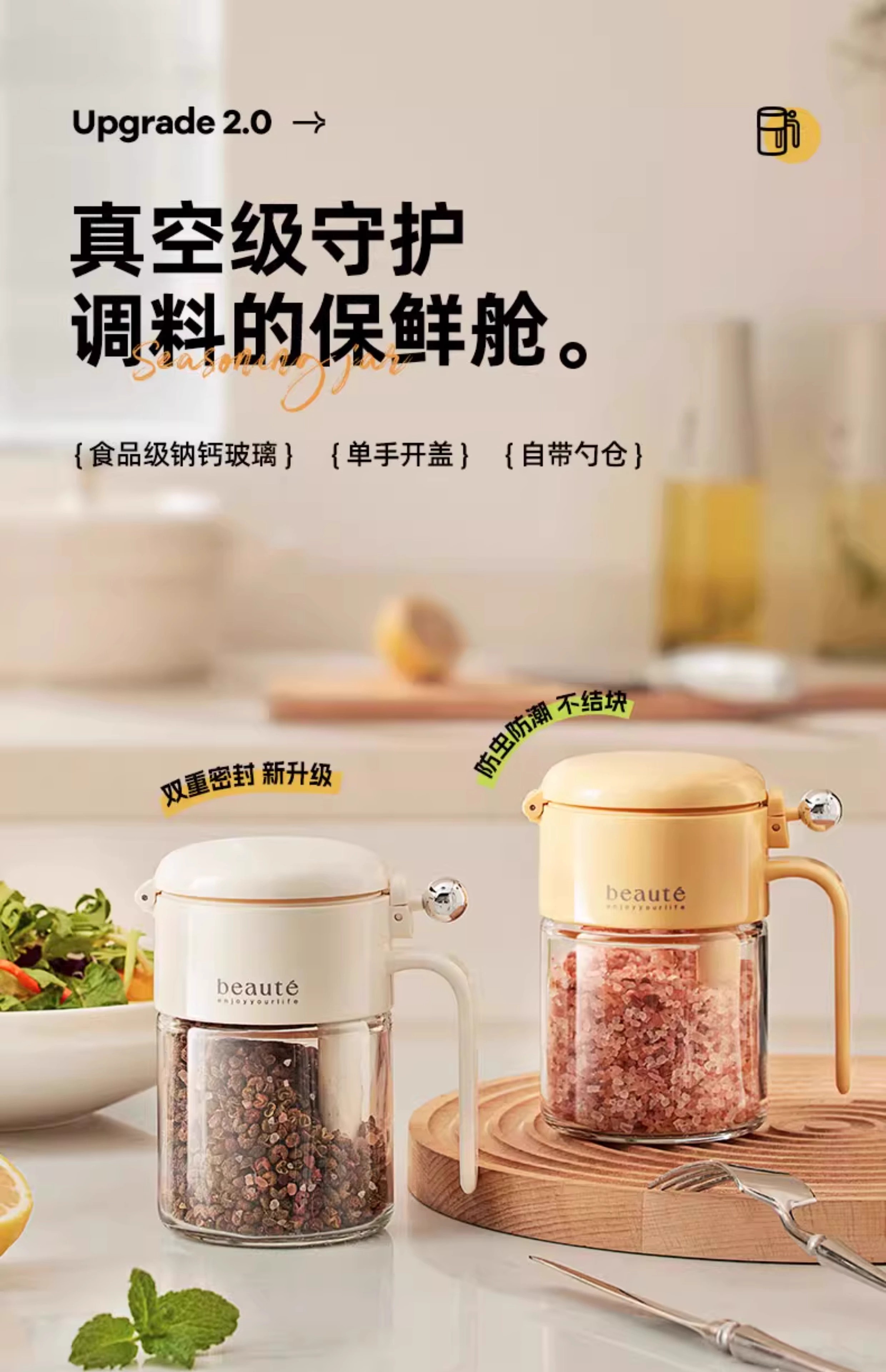 ✅ 둥근 볼 양념 항아리, 소금 항아리, 밀봉된 방습 유리 항아리, 주방 가정용 양념 상자, 병, 정량 양념스토어 가기