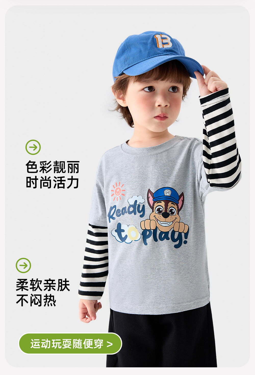 강아지 팀 소년용 긴팔 티셔츠 투피스 스타일 티셔츠 어린이 가을 의류 남녀 아기용 이너웨어 도매스토어 가기