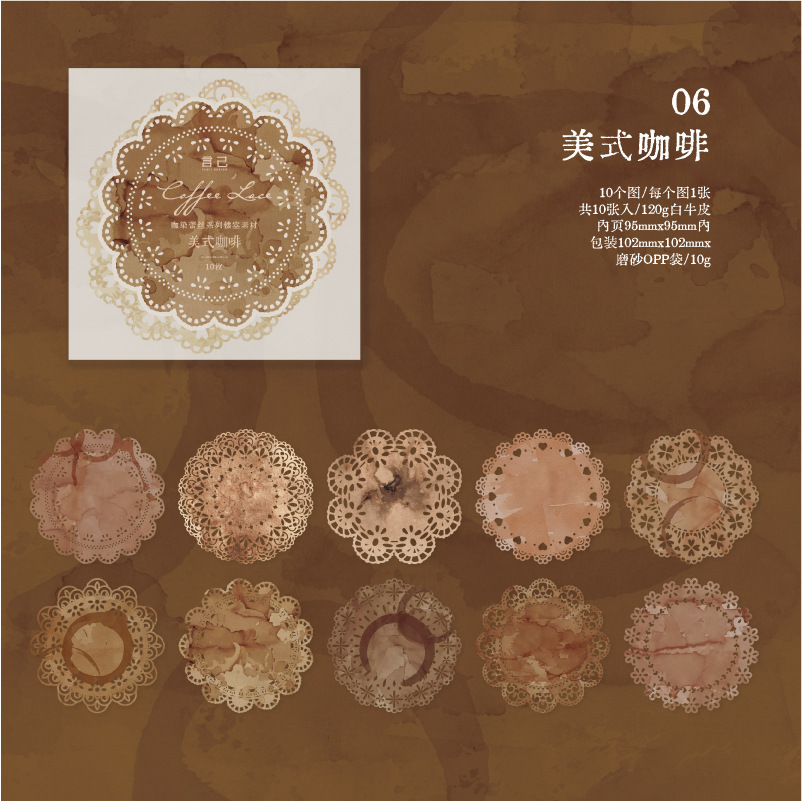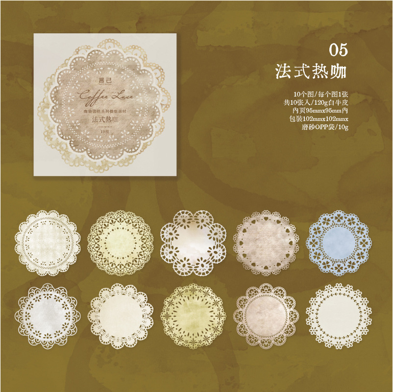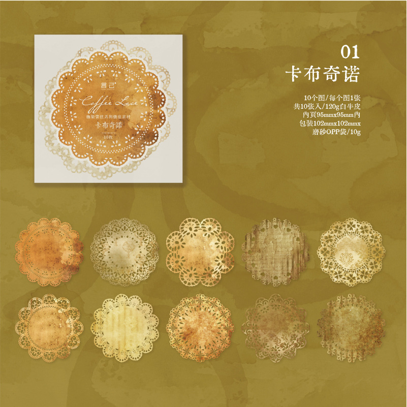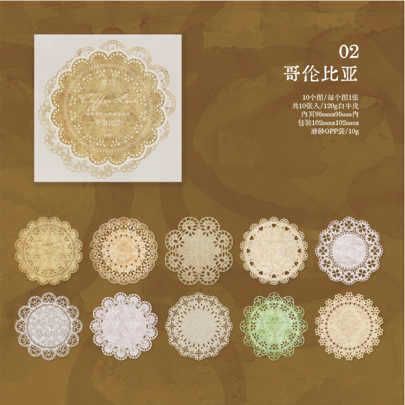 Yanjikaka 염색 레이스 시리즈 재료 종이 복고풍 중공 핸드북 장식 재료 10장 6가지 옵션