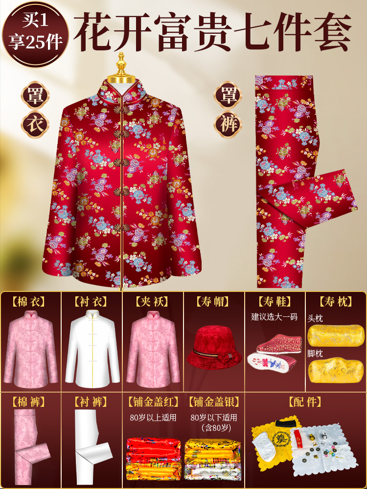 • 〔 ✥ ✦ ✥ ✦ ] [여성용 실크 코트] 꽃무늬 7종 세트 (레드) [ ✥ ✦ ✥ ✦ 〕