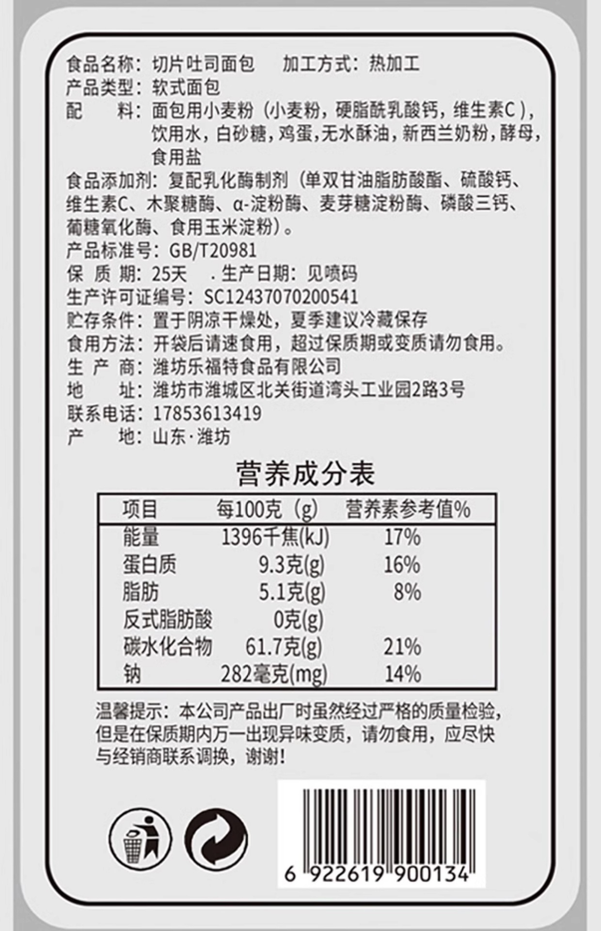 • 샌드위치용 대형 토스트 슬라이스 1팩, 15슬라이스, 각 슬라이스는 약 12.5*12cm, 두께 1.2cm입니다.