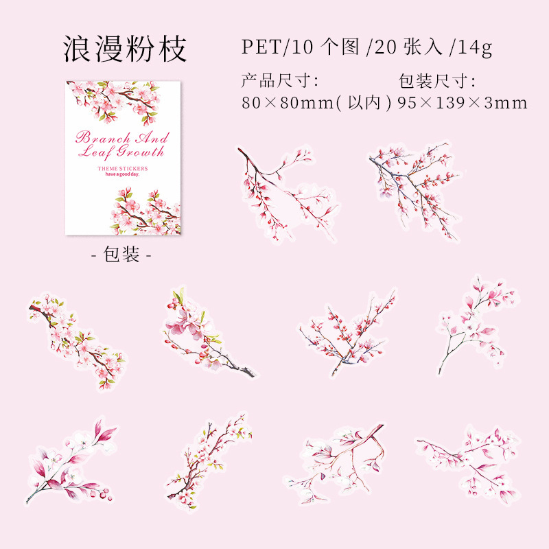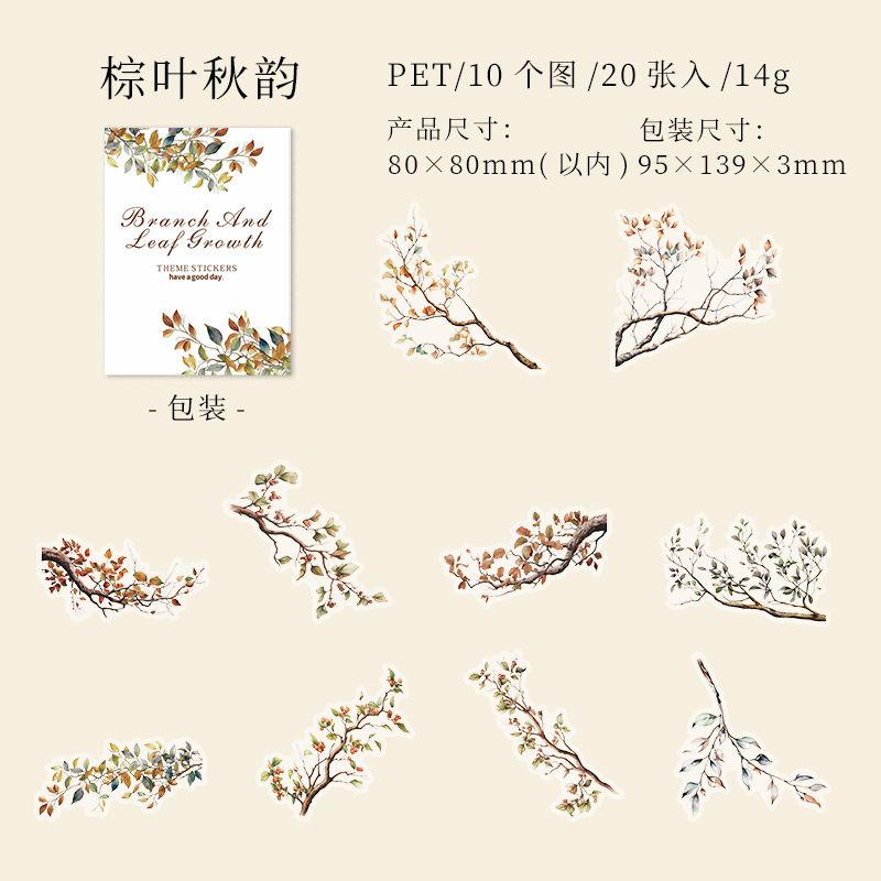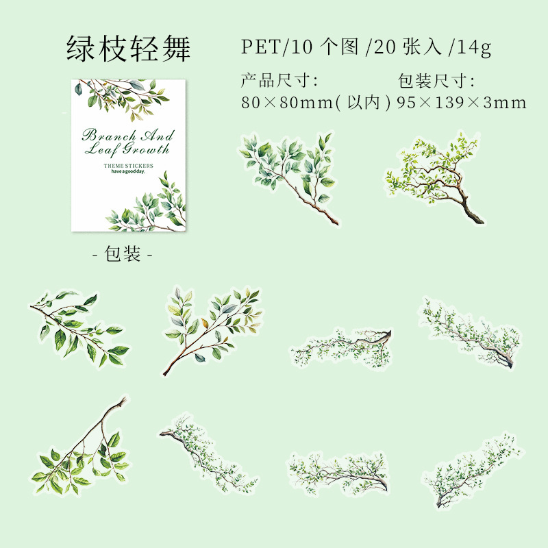 가지와 잎 성장 시리즈 아름다운 하루 PET 20 스티커 나뭇잎 테마 핸드북 DIY 장식 스티커 6가지 스타일