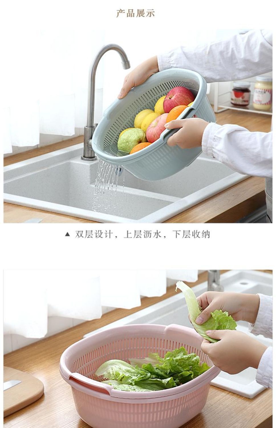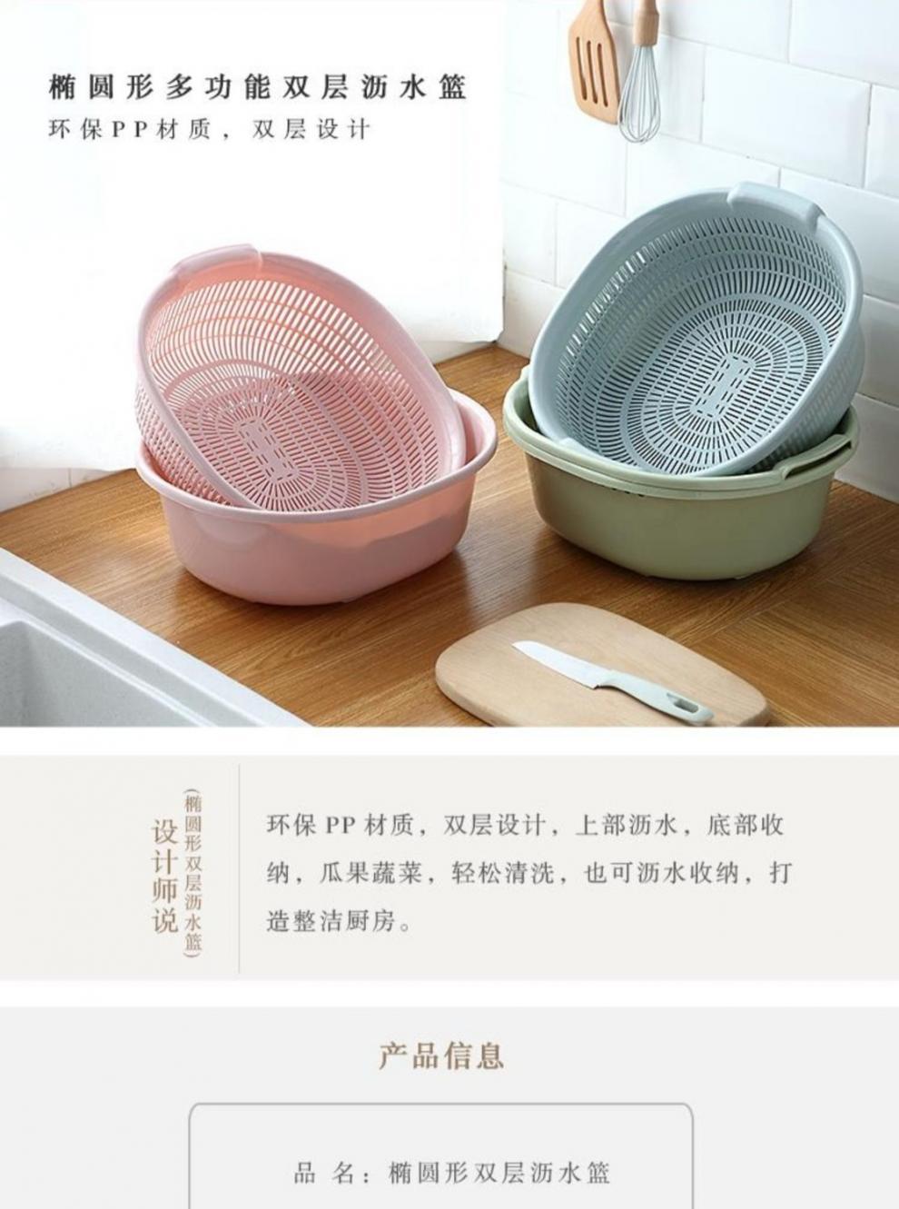 • 핑크와 퍼플 [특대형+대형+중형] - 2단 배수 바구니 [바구니 1개, 세면대 1개] 2종 세트