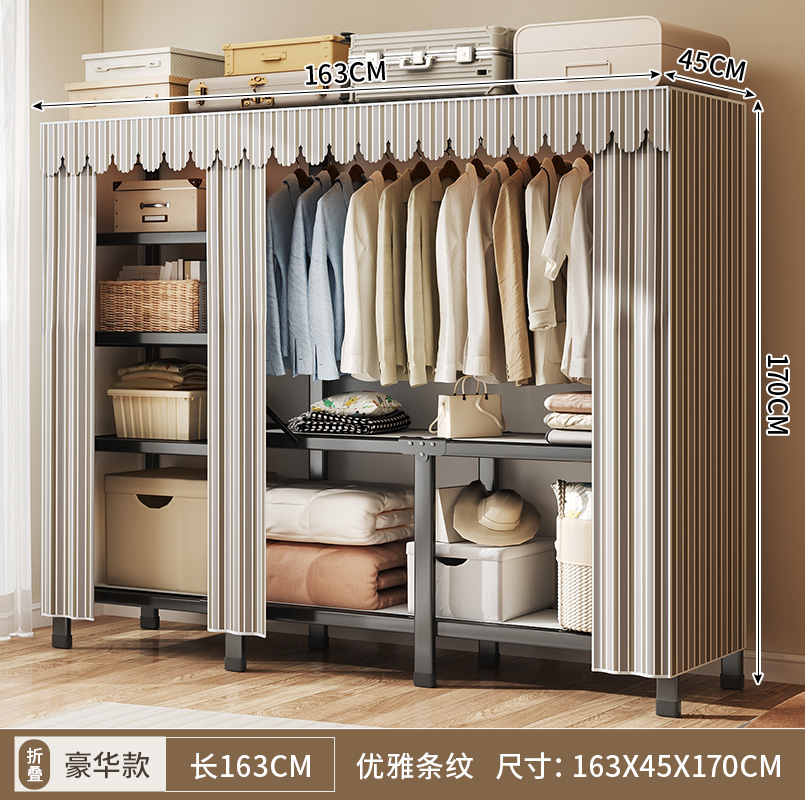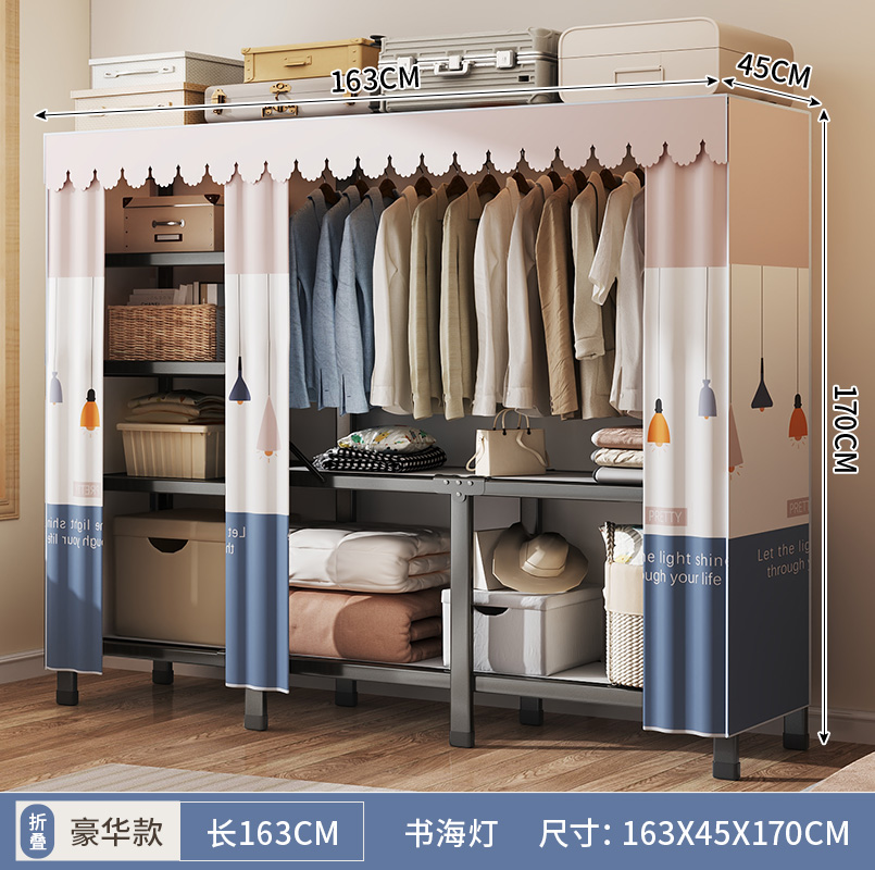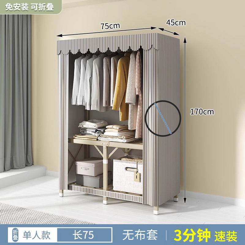 도매 옷장 설치가 필요없는 접이식 간단한 가정용 침실 새로운 작은 천 옷장 전체 강철 프레임 강력하고 내구성스토어 가기