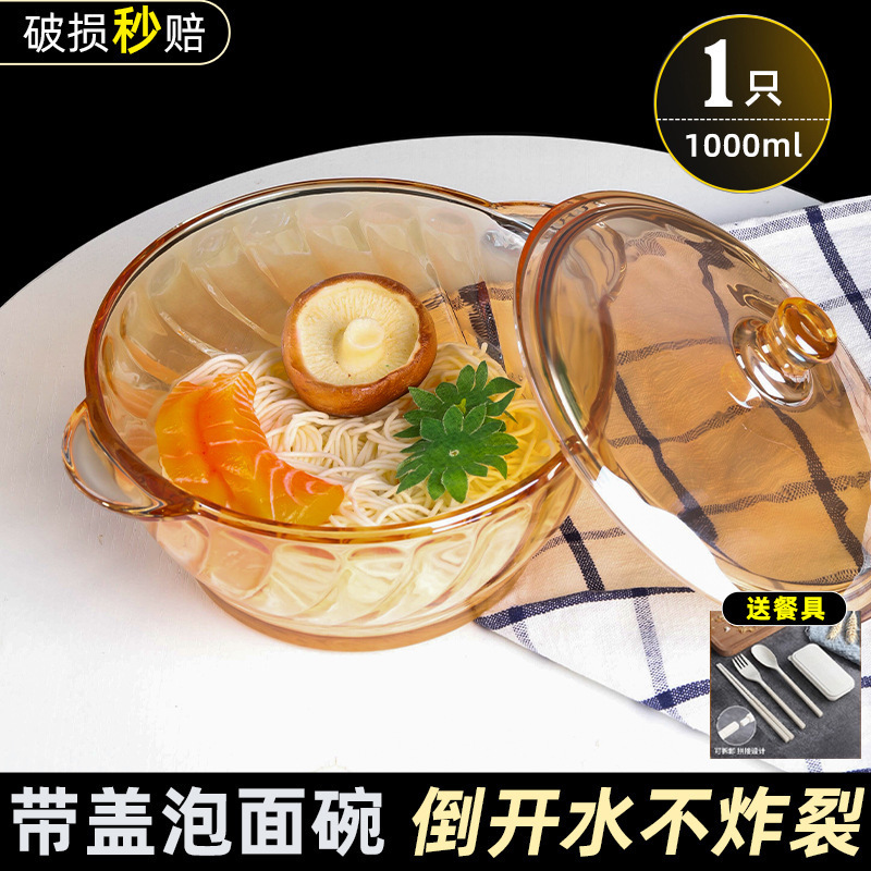 전자레인지 전용그릇, 뚜껑이 있는 유리라면그릇, 기숙사용 학생 양이국그릇, 가정용 대형라면그릇