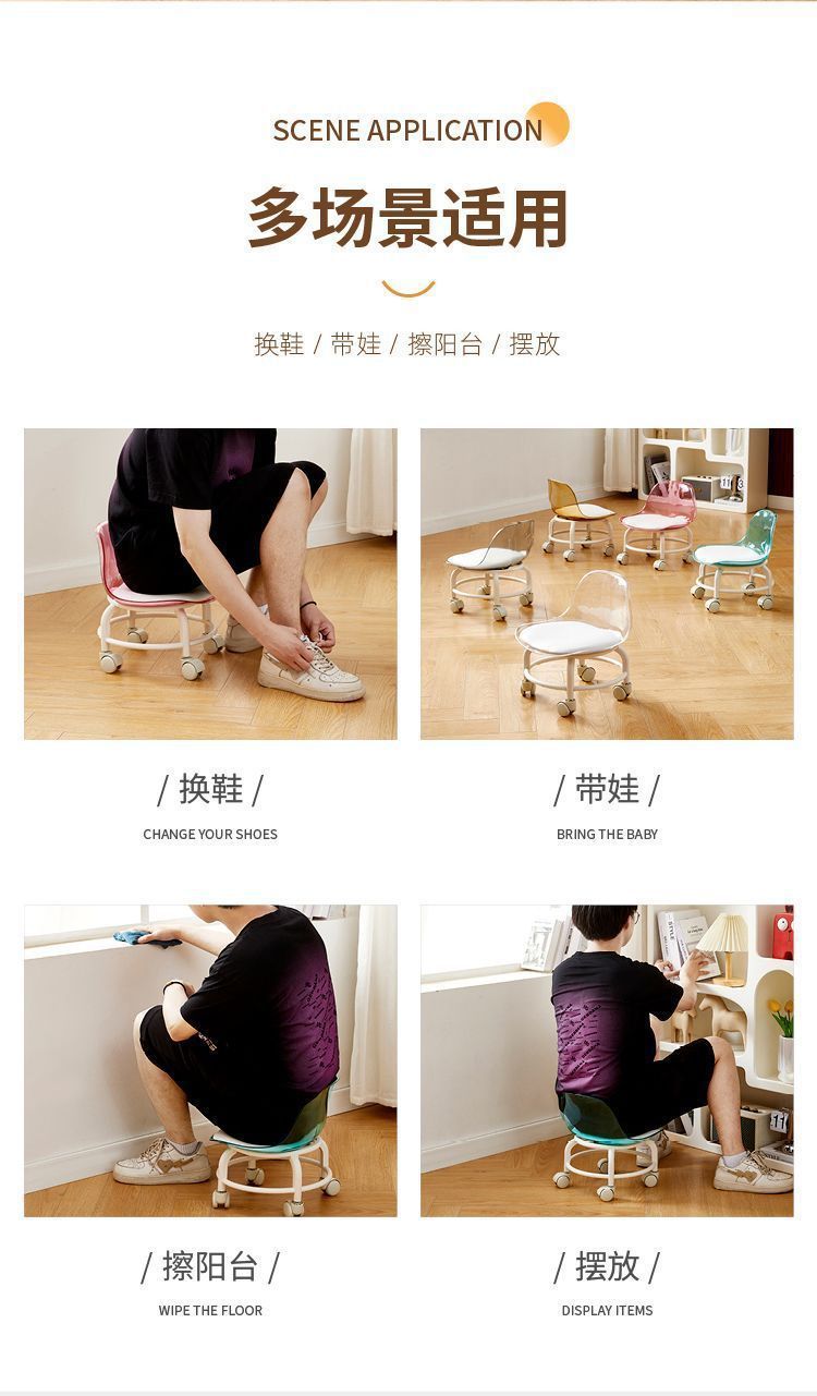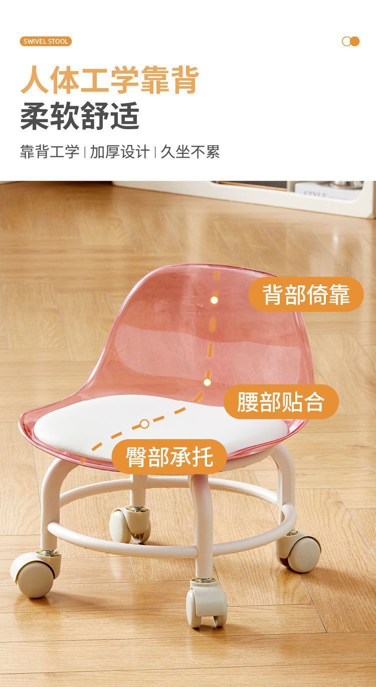 범용 바퀴가 달린 아크릴 작은 의자, 어린이 유아용 의자, 인터넷 연예인 작은 의자, 도르래 낮은 의자, 아름다운 바닥 의자스토어 가기