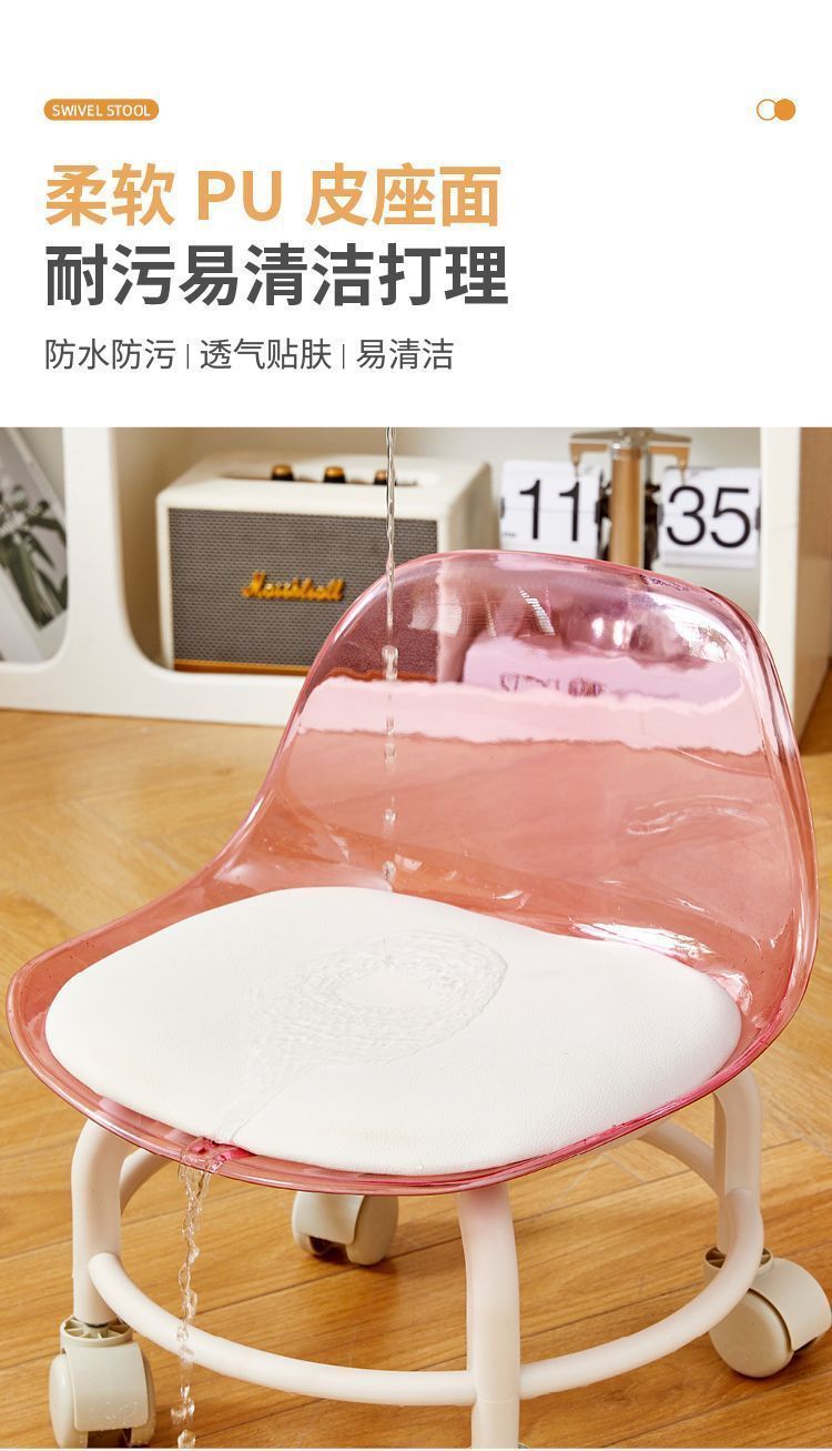 범용 바퀴가 달린 아크릴 작은 의자, 어린이 유아용 의자, 인터넷 연예인 작은 의자, 도르래 낮은 의자, 아름다운 바닥 의자