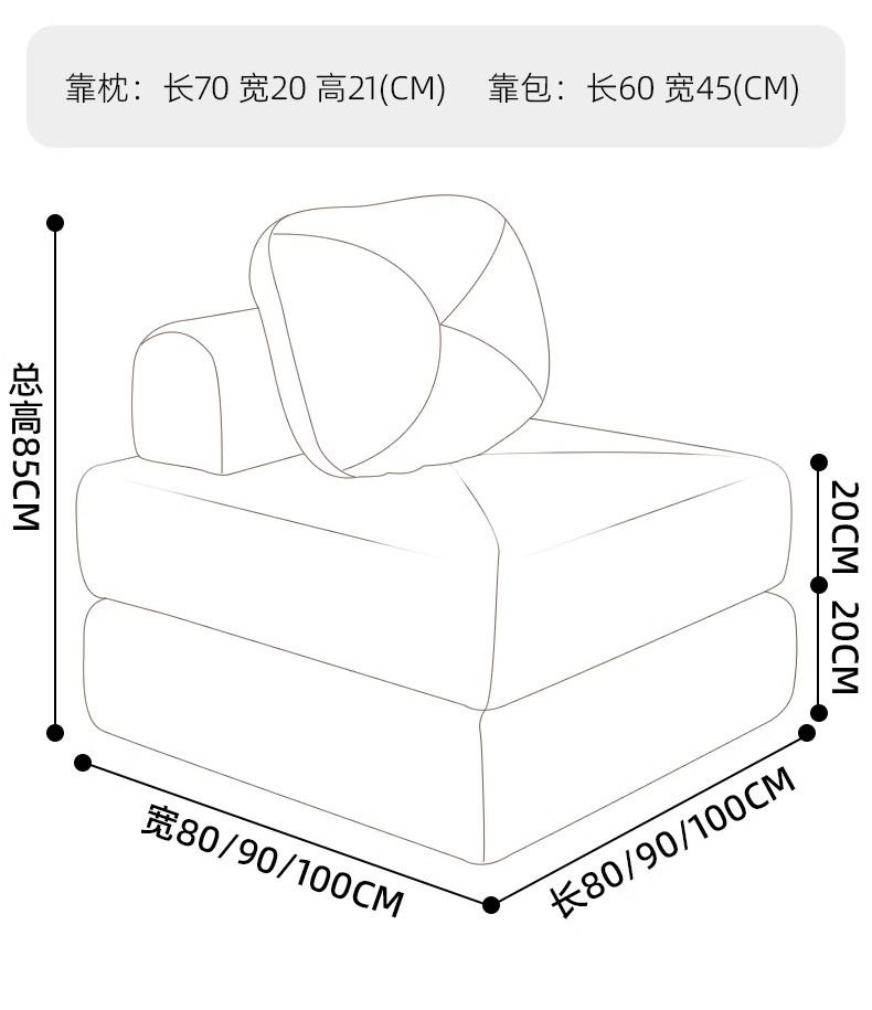 크림색 1인용 소파, 작은 거실, 두부 블록, 모찌 소파 베드, 접이식 이중 목적 모듈, 게으른 사람들을 위한 접이식