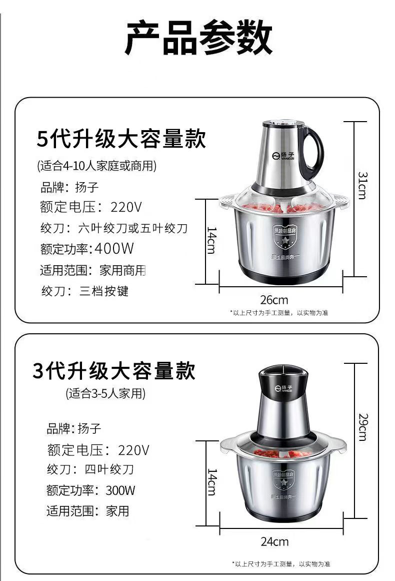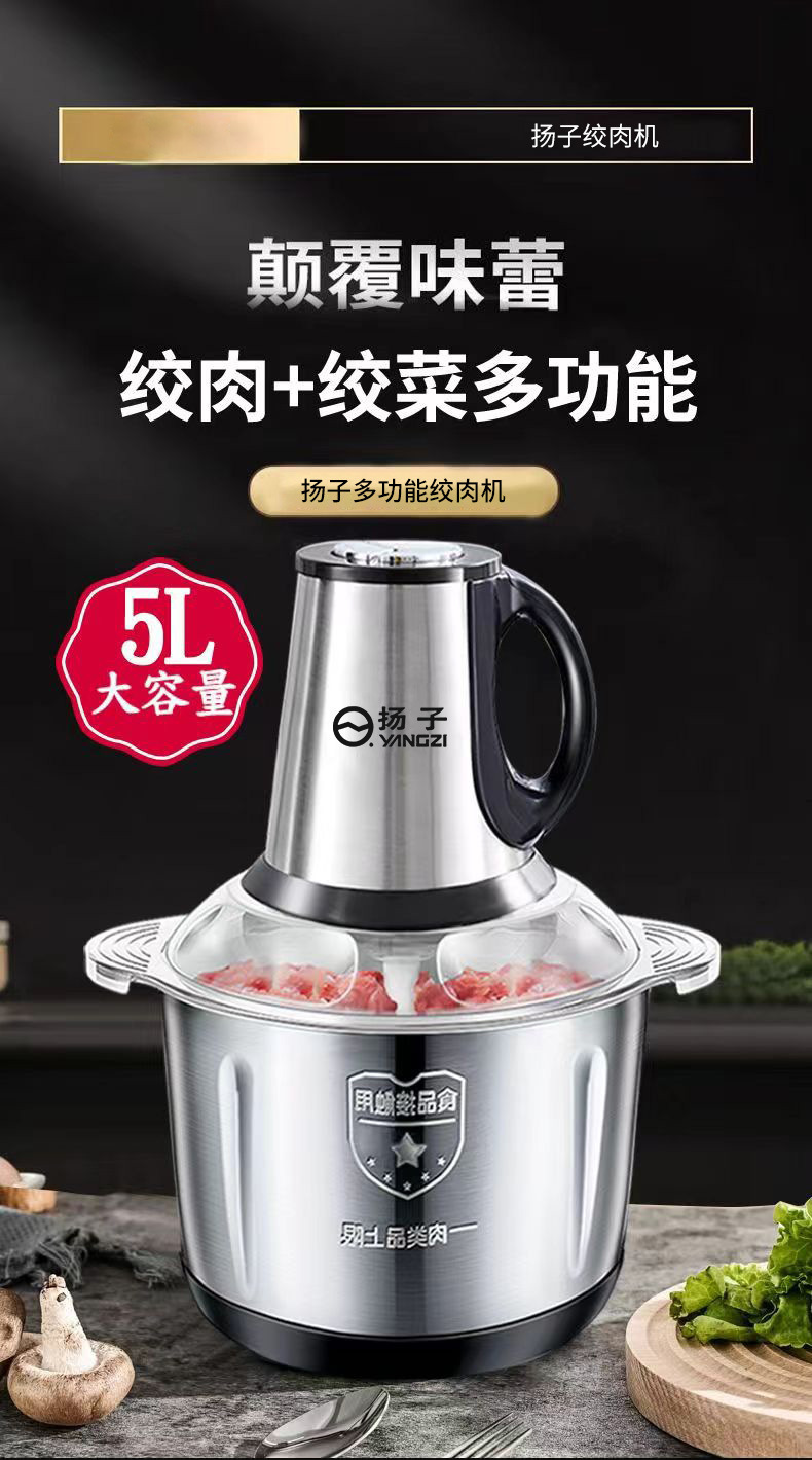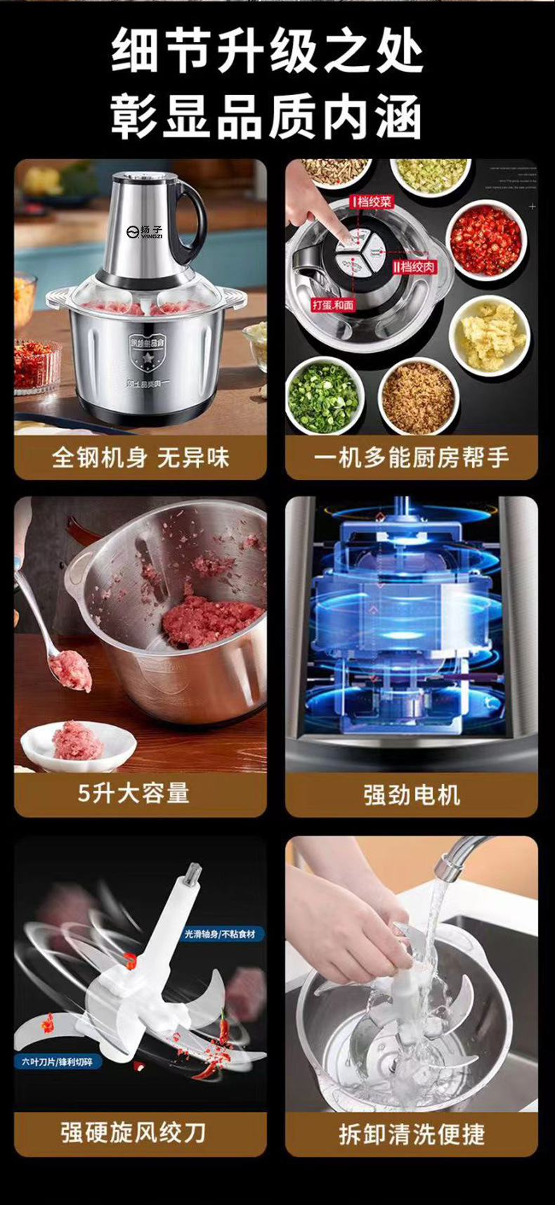 Yangzi 가정용 다기능 대용량 고기 분쇄기 완전 자동 전기 소형 요리 기계 야채 분쇄기 마늘 분쇄기 식품 보충 기계