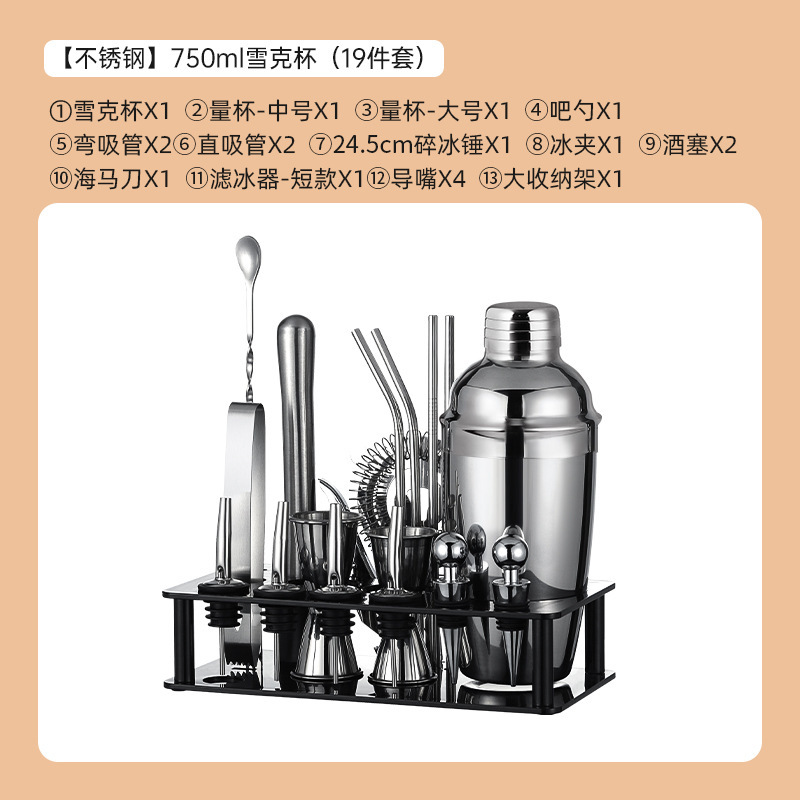 • [전문가용 19종 도구 세트] 750ml 올스틸 셰이커 컵.