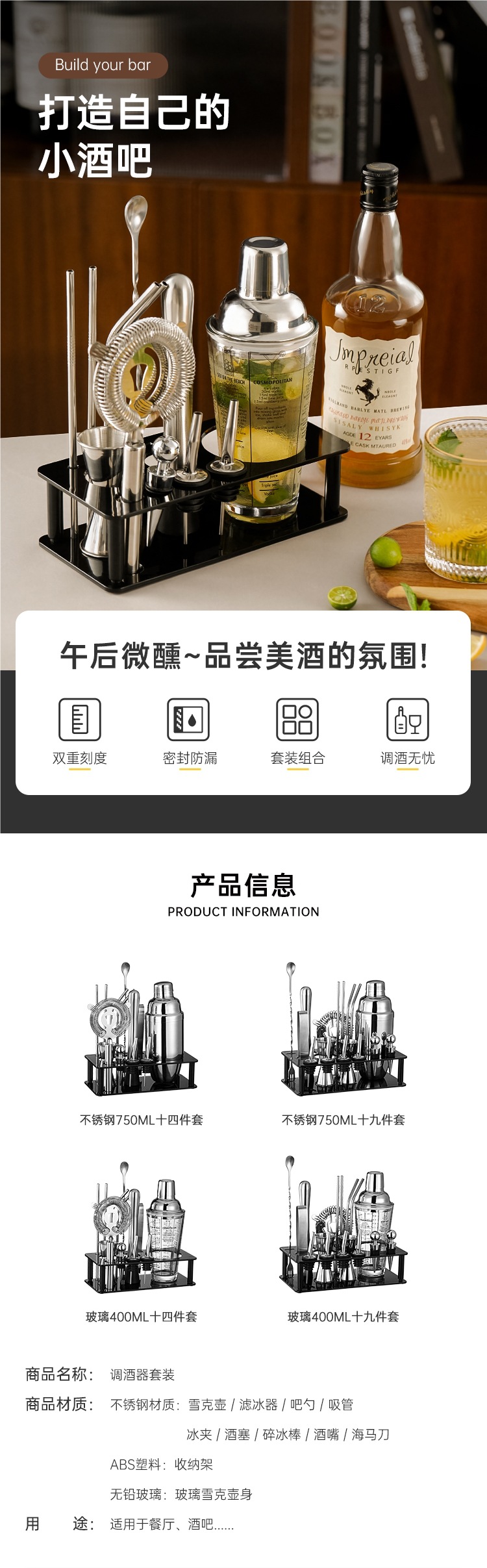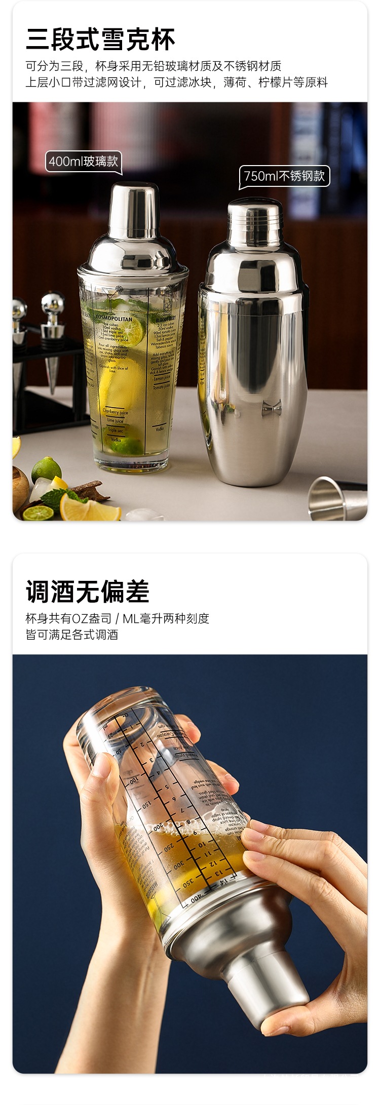 • [14종 완전한 바텐딩 도구 세트] 400ml 유리 셰이커 컵.