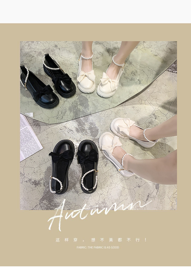 메리 제인 신발 여성 2025 여름 새로운 플랫 신발 여성 여름 두꺼운 밑창 나비 매듭 메리 제인 작은 가죽 신발스토어 가기
