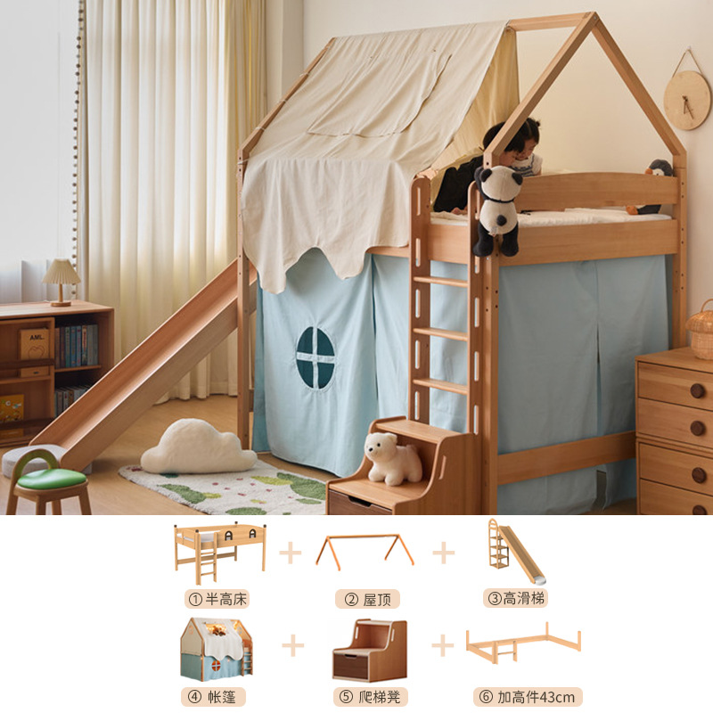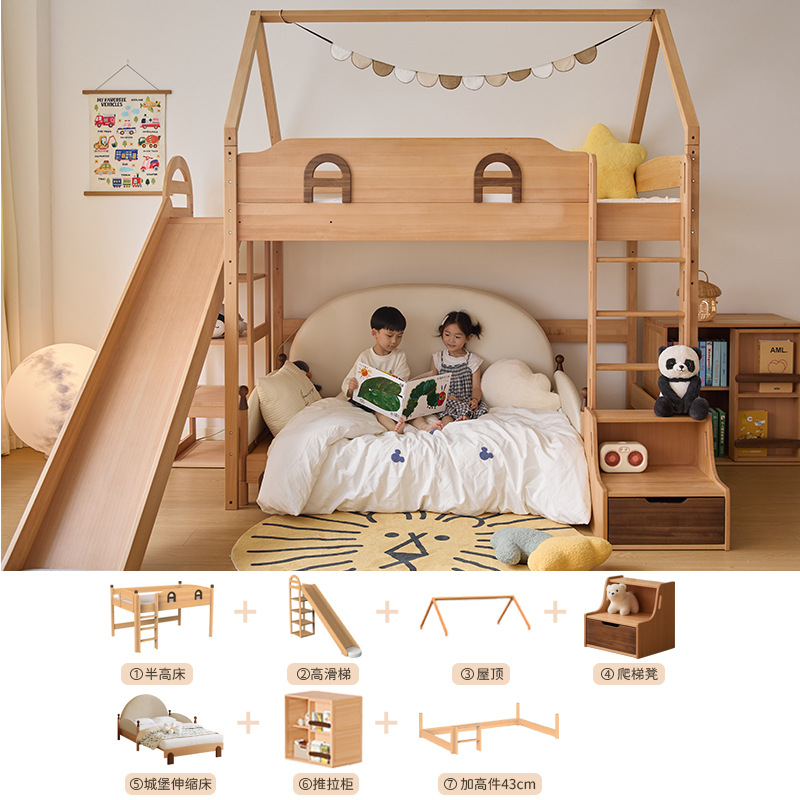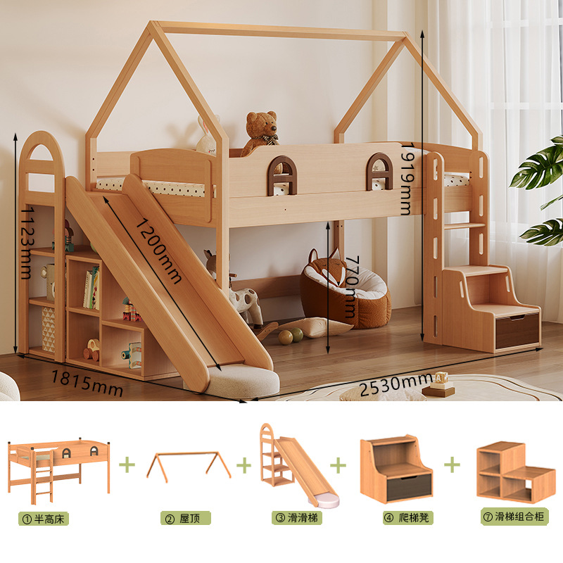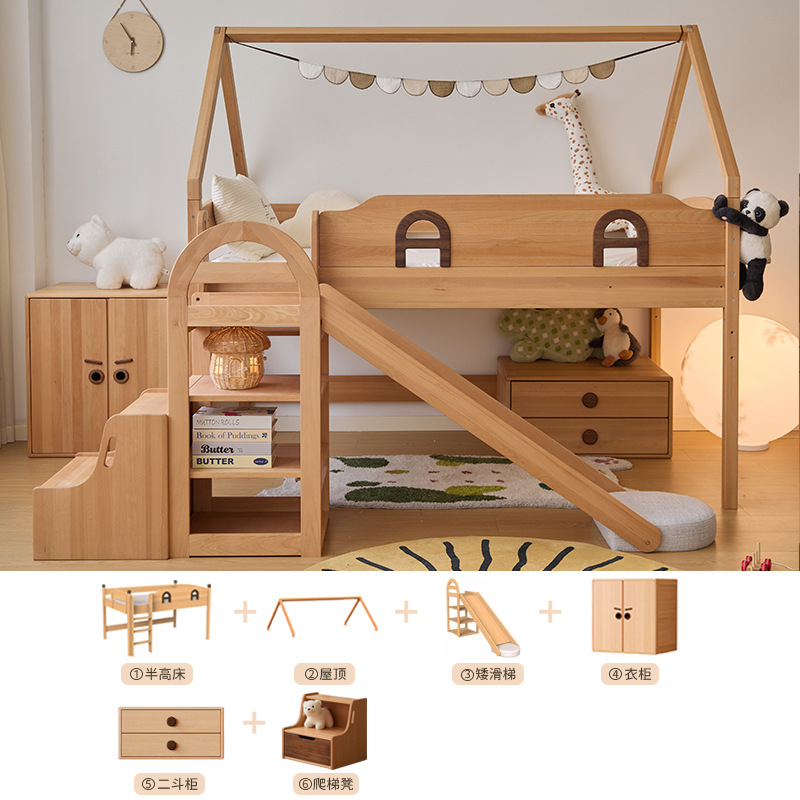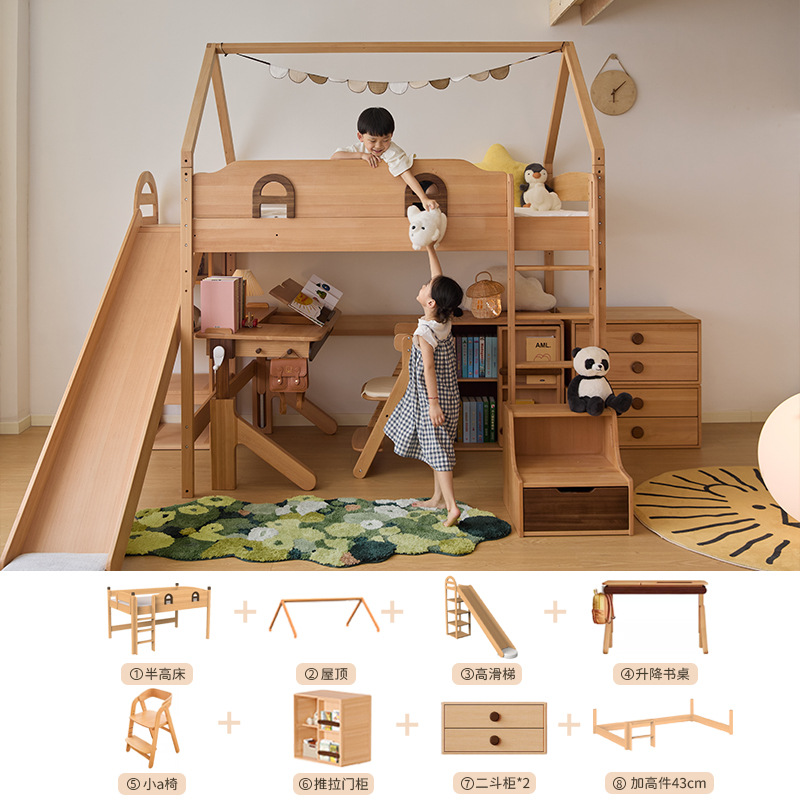 청소년과 나무 모든 단단한 너도밤 나무 어린이 반 높이 침대 소년과 소녀 트리 하우스 침대 플라잉 하우스 캐슬 슬라이딩 베이스