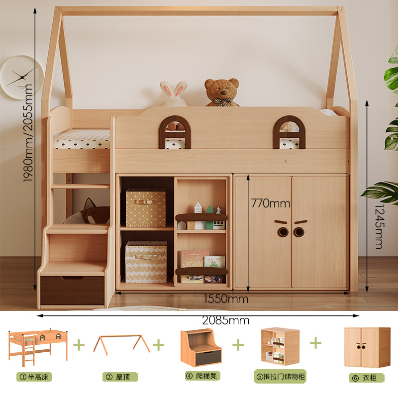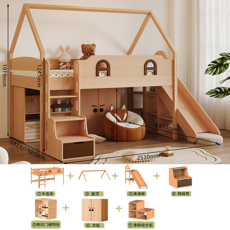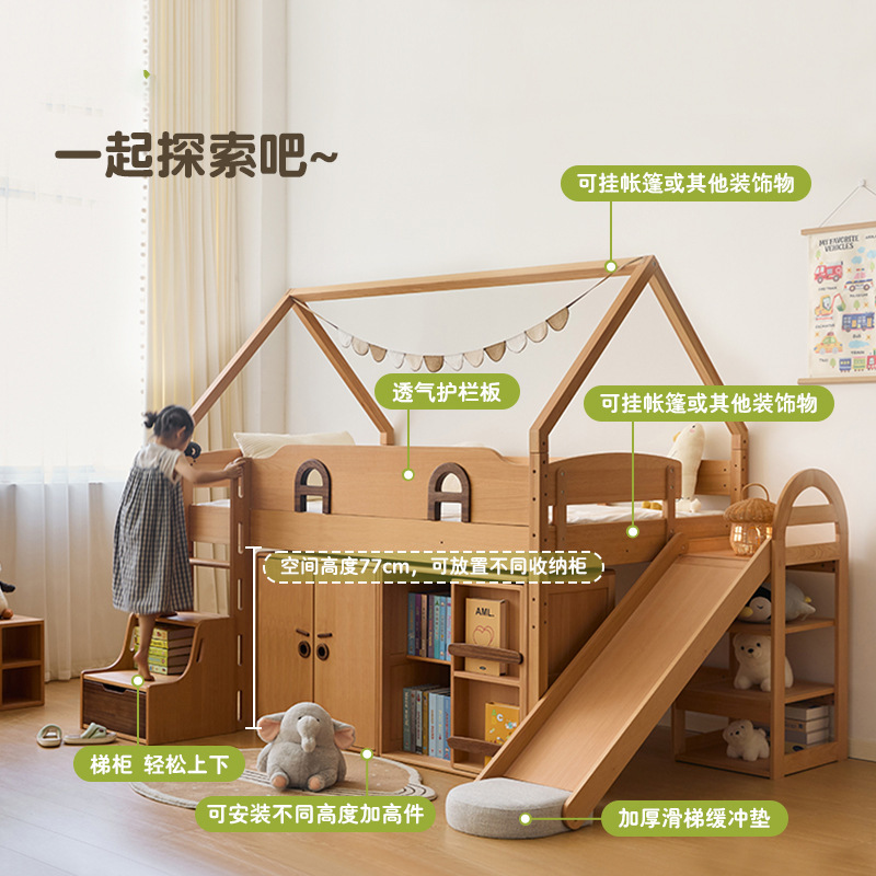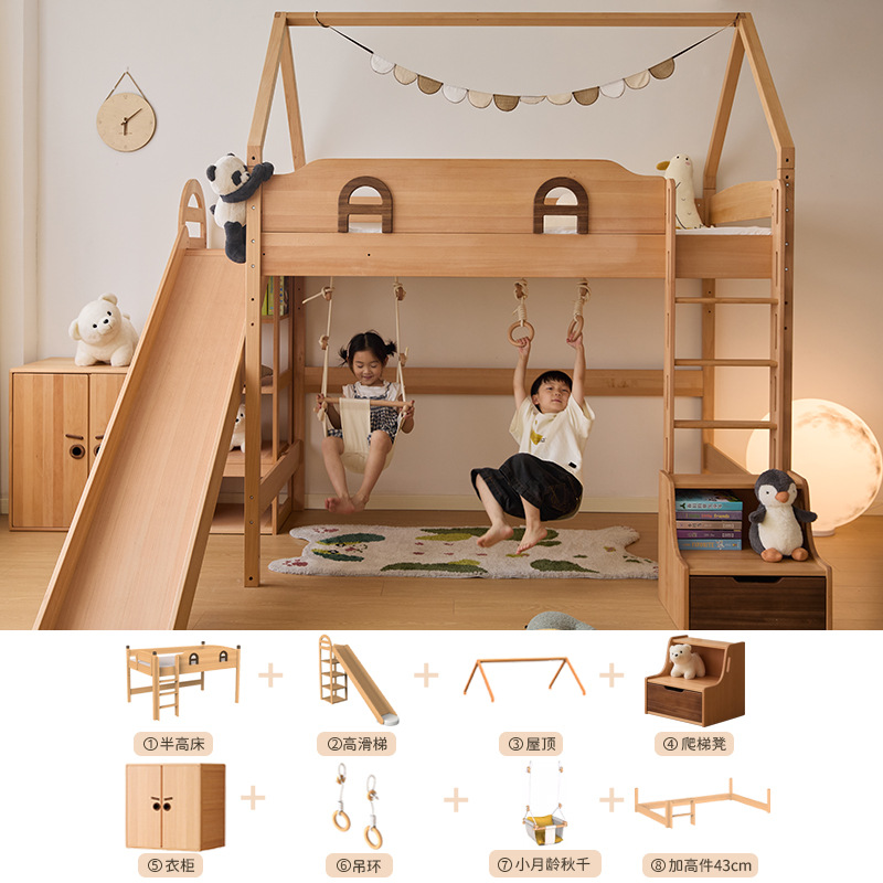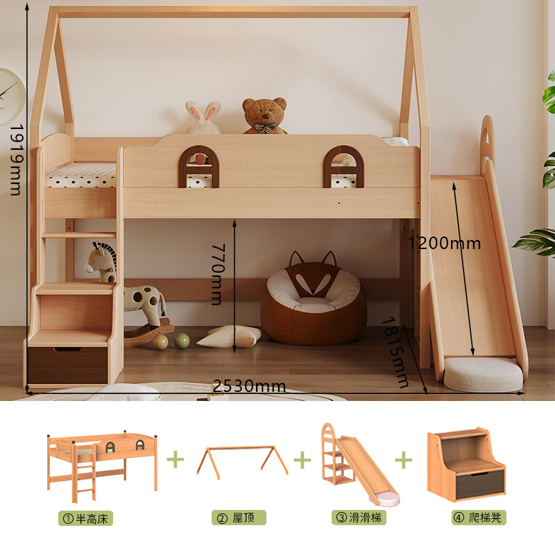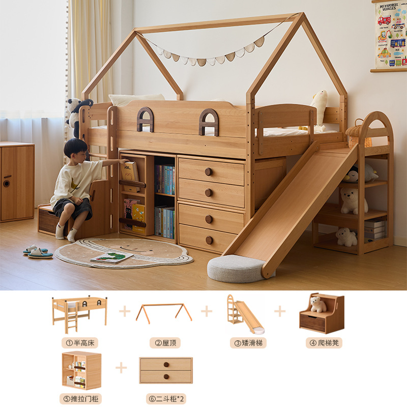 청소년과 나무 모든 단단한 너도밤 나무 어린이 반 높이 침대 소년과 소녀 트리 하우스 침대 플라잉 하우스 캐슬 슬라이딩 베이스