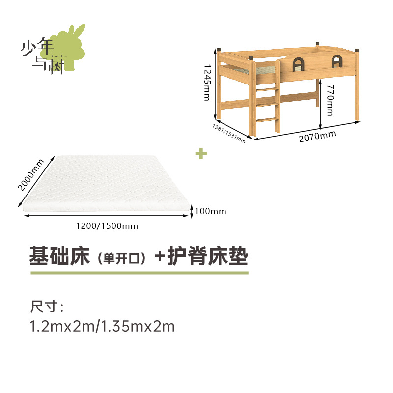 • 캐빈 하프 높이 침대 + 척추 보호 매트리스 유럽 너도밤나무