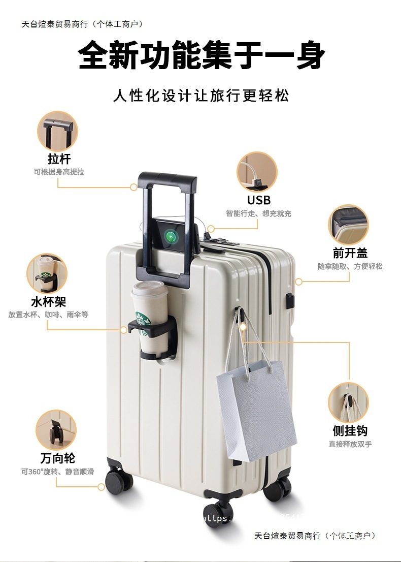 • 20inch 기내 케이스 [물컵 홀더, 충전 포트, 전면 개방형 커버, 패셔너블한 단거리 여행] ⚑ ⚑