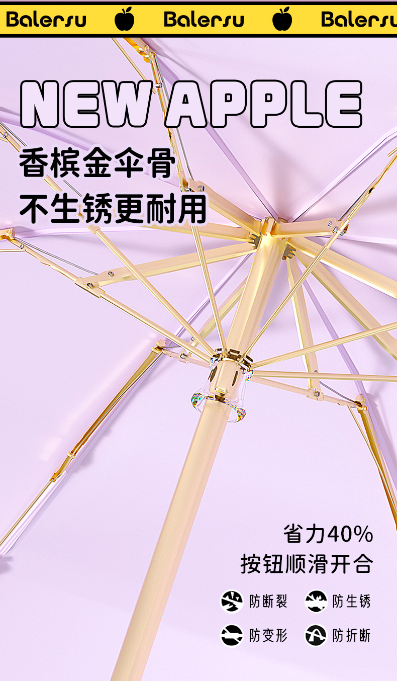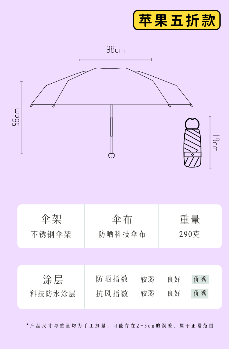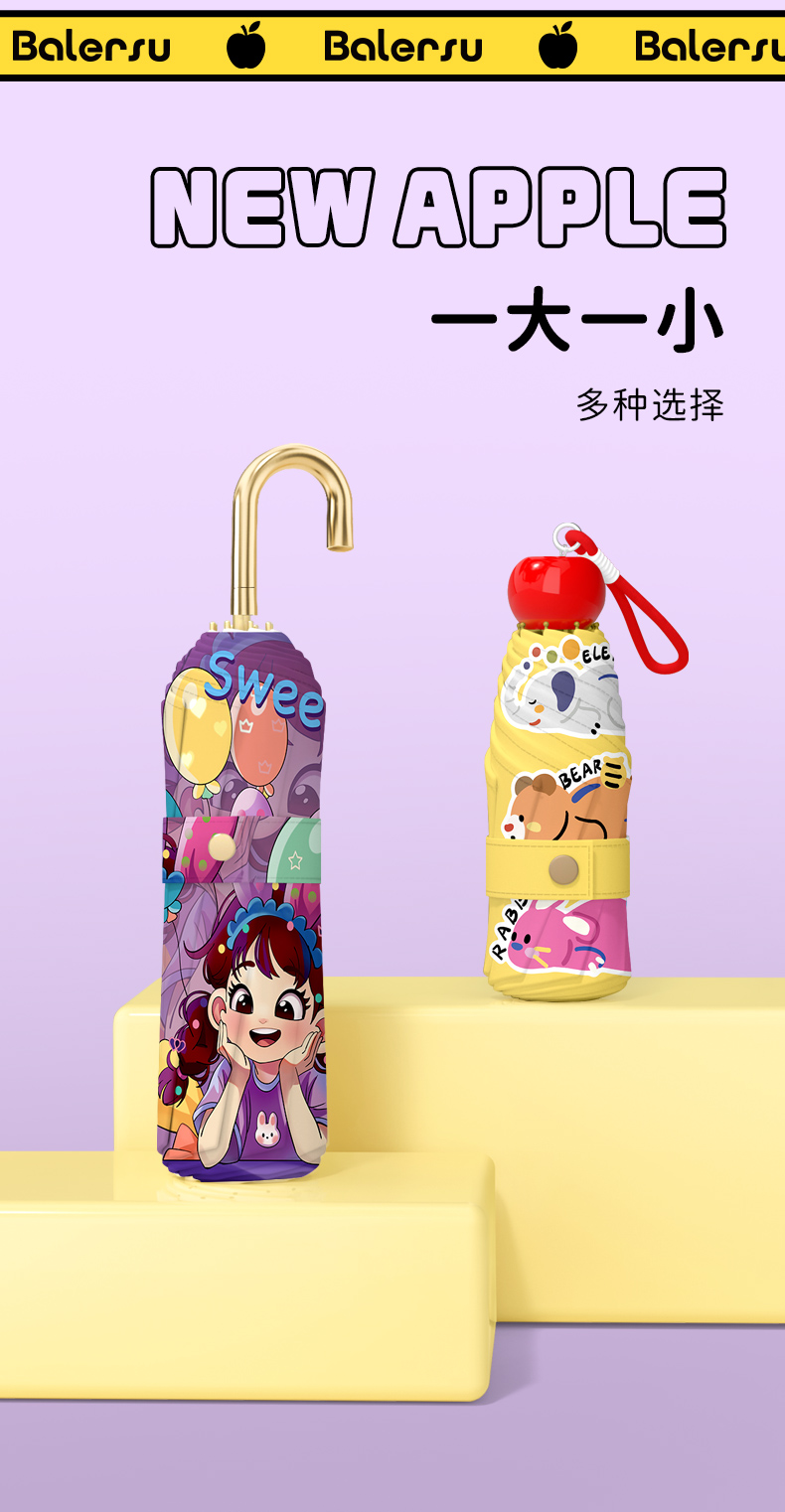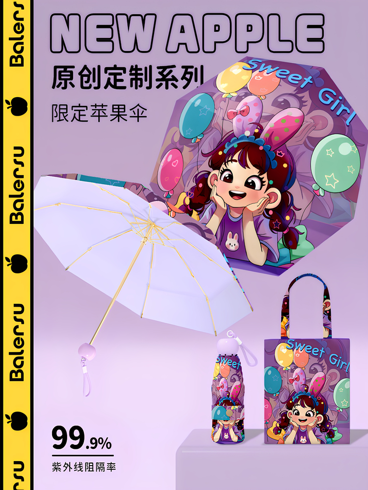 ✅ 새로운 기능 스타일 애플 헤드 태양 우산 여성용 자외선 차단제 및 자외선 차단제 비 또는 빛 미니 접이식 컬러 접착제 비