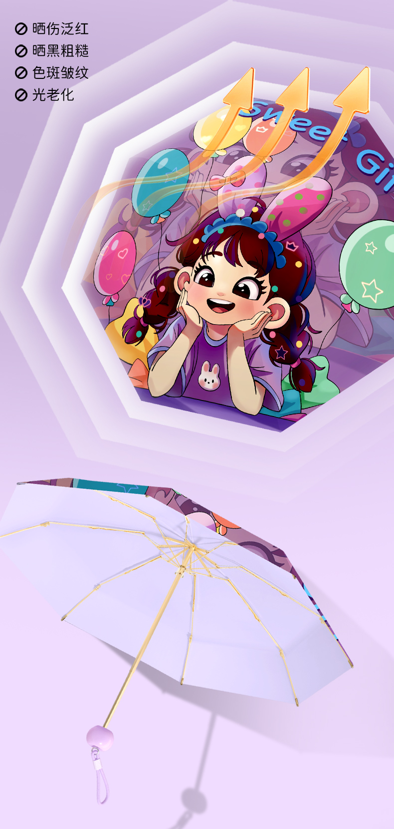 ✅ 새로운 기능 스타일 애플 헤드 태양 우산 여성용 자외선 차단제 및 자외선 차단제 비 또는 빛 미니 접이식 컬러 접착제 비스토어 가기
