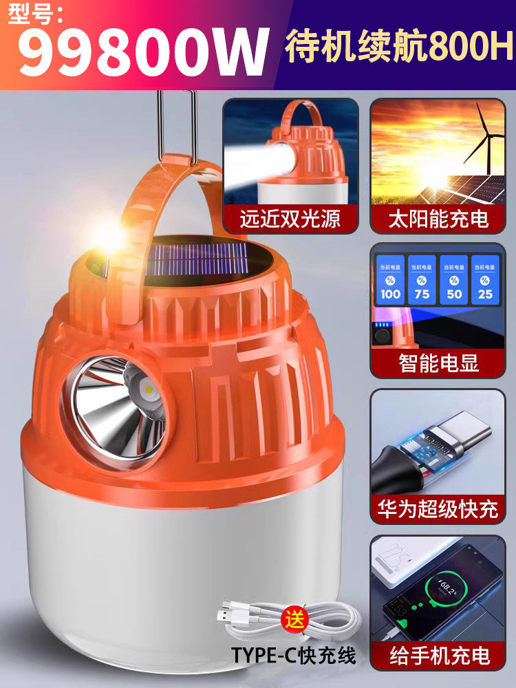• 상단 구성 - 99800w, 배터리 수명 600시간, 듀얼 광원 + 태양광 + 보조 배터리 기능 + 지능형 전자 디스플레이