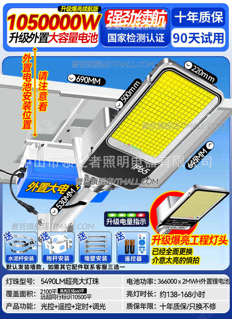 • 2025년 신형 딩파이 Bangwang [580000W] 고급 외장 대형 배터리 + 고출력 단결정 패널 + 곡면 광역 조명