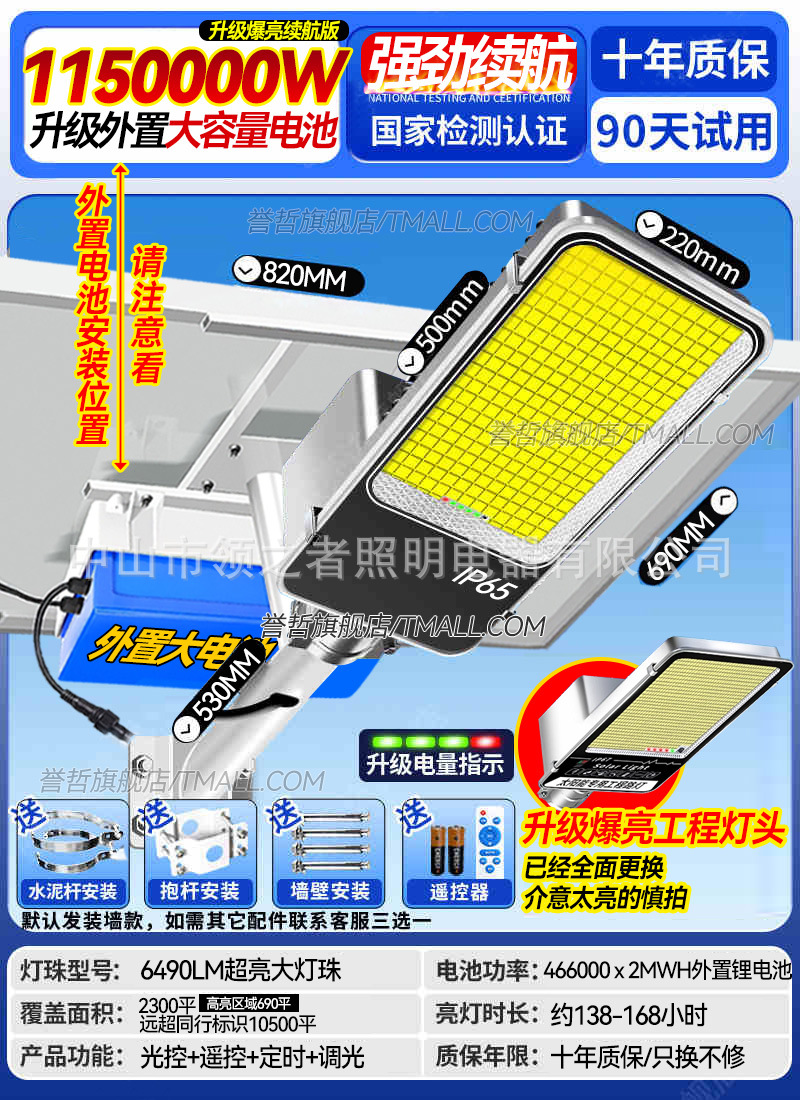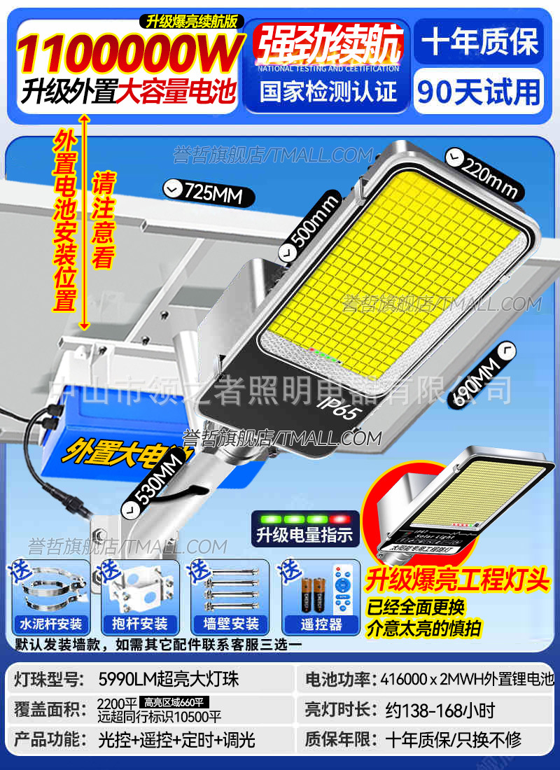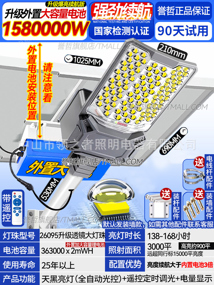 • 2025년 신형 딩파이어리 킹 [1580000W] 고급형 외장형 대용량 배터리 + 고출력 단결정 패널 + 곡면형 광역 조명