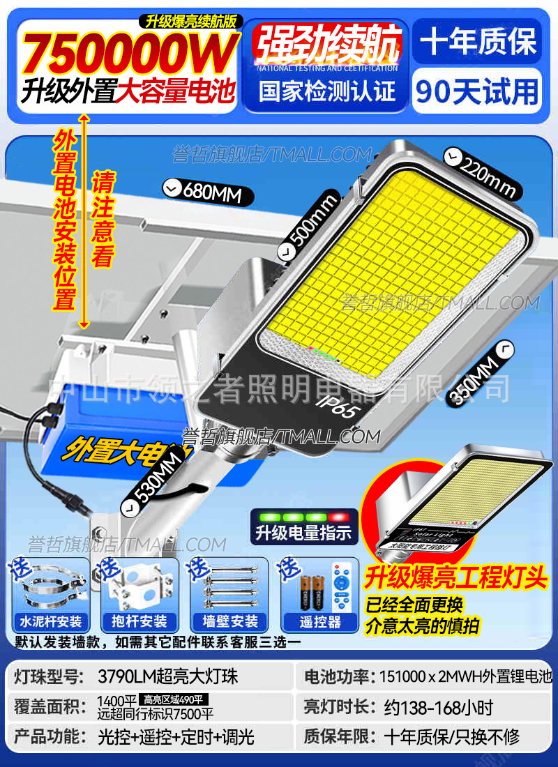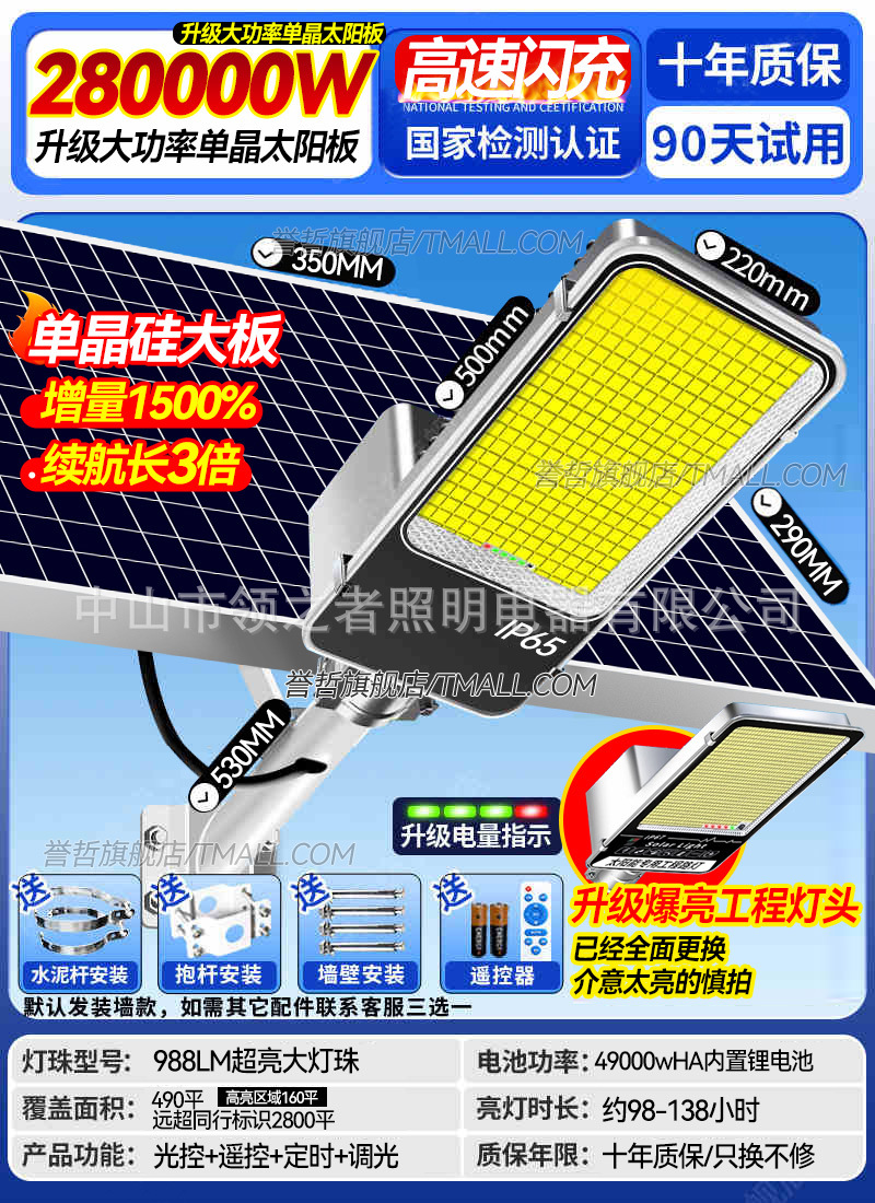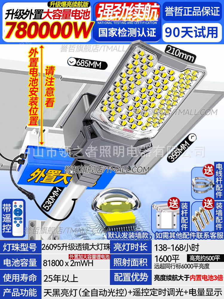 • 280000W 새로 업그레이드된 밝은 모델★고출력 단결정 태양광 플래시 충전★공장 직거래 + 비 오는 날에도 전원 공급