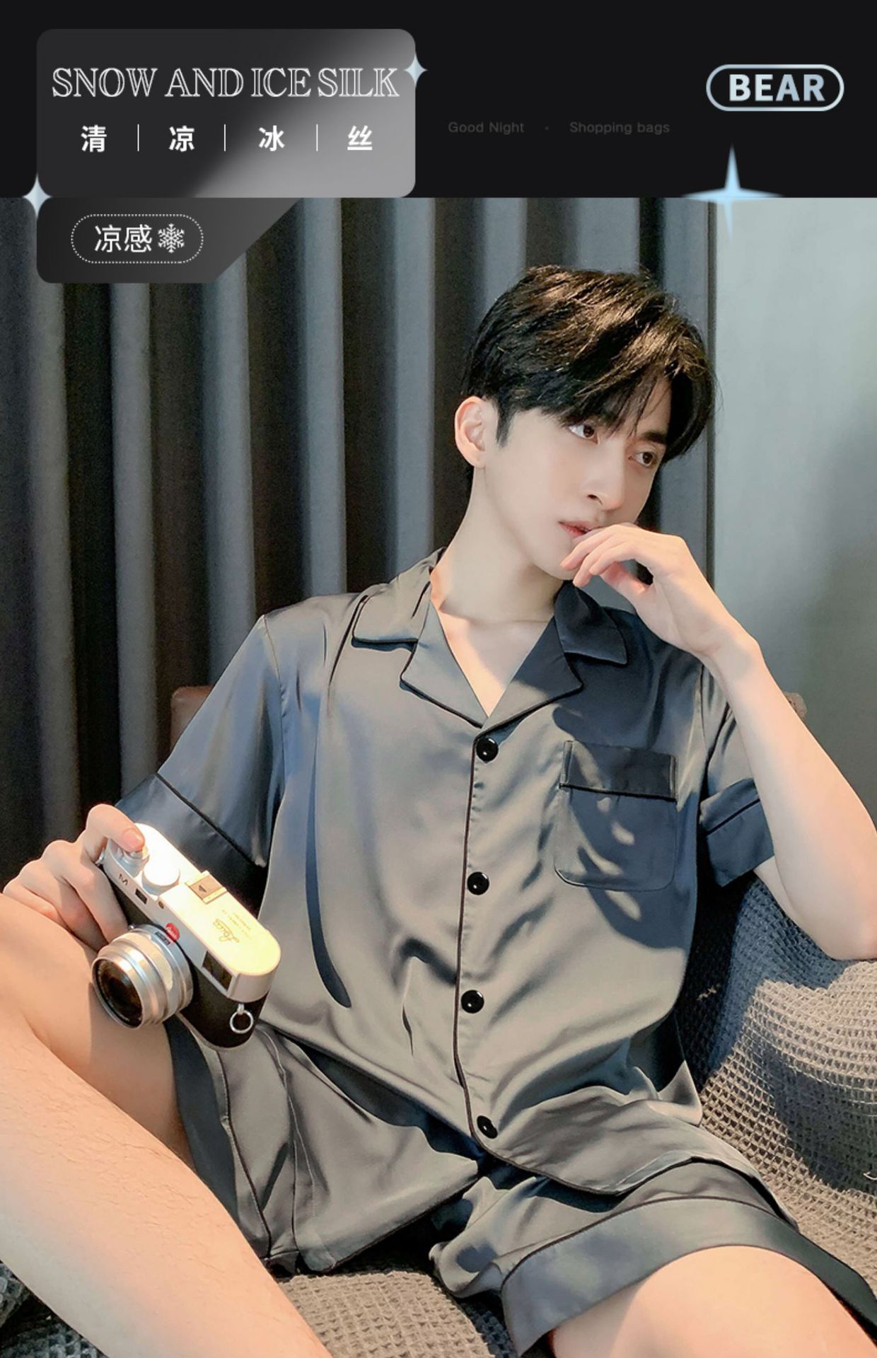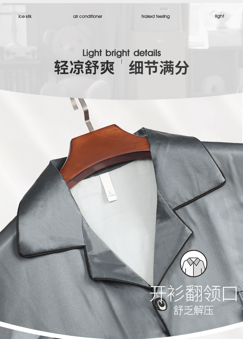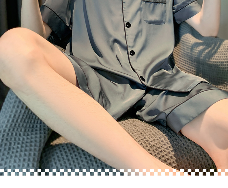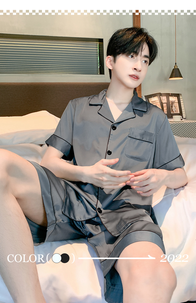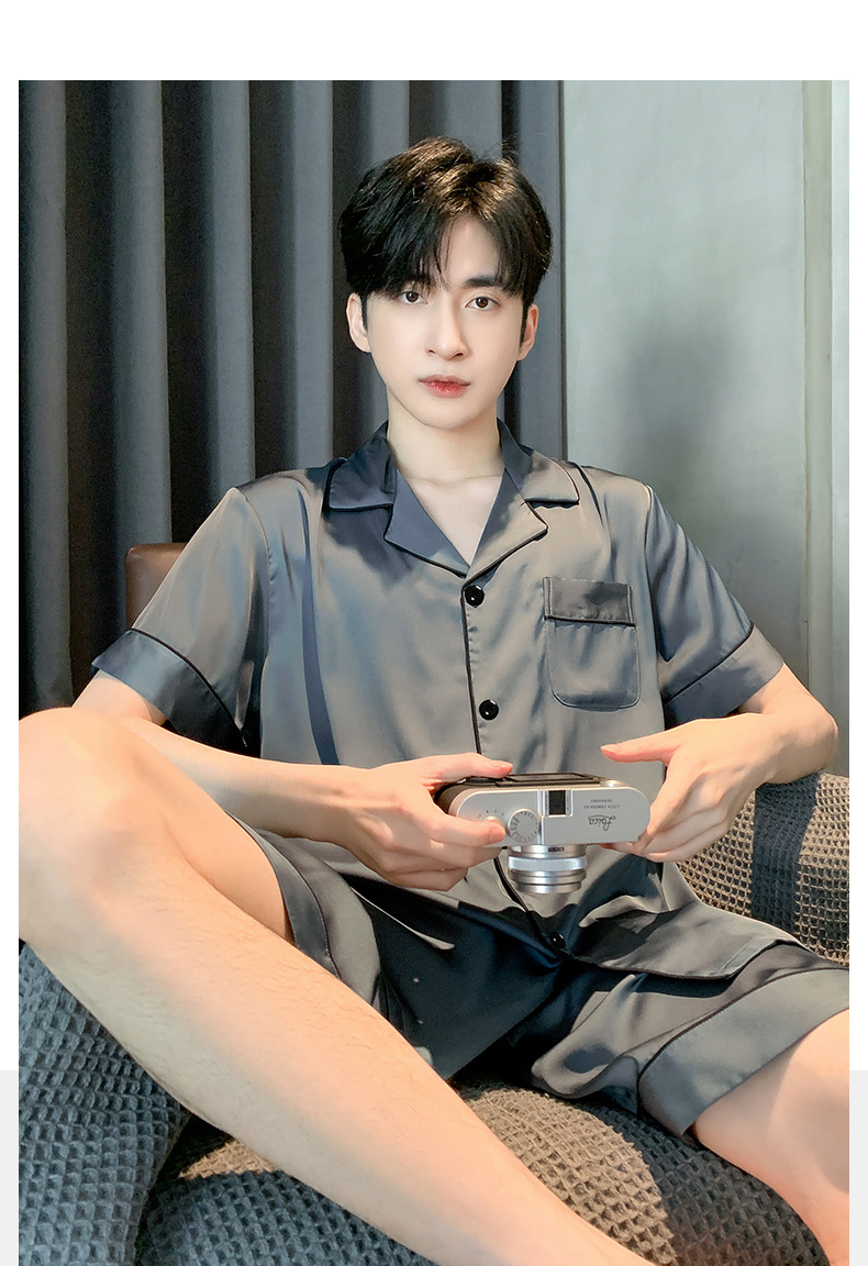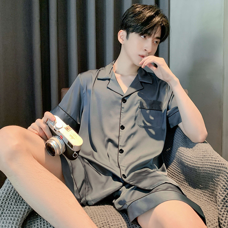 2025 여름 남성 잠옷 얼음 실크 시원한 단순 반팔 반바지 얇은 가정 의류 대형 옷깃 양복스토어 가기