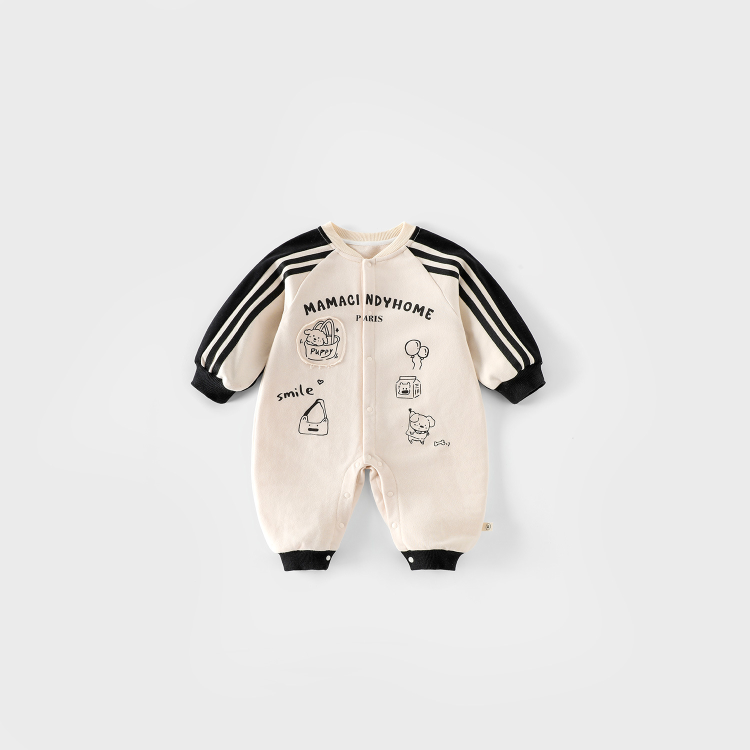 아기 패션 점프 슈트 2025 새로운 가을 아기 패치 만화 크롤링 슈트 신생아 웨빙 만화 옷스토어 가기