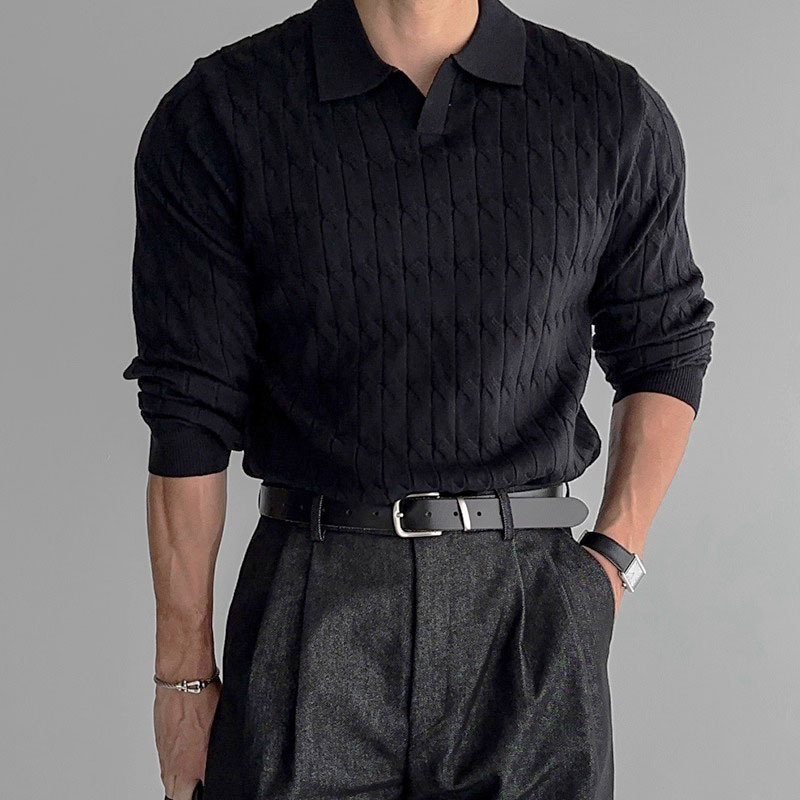가을 겨울 신작 스웨터 남성 폴로 셔츠 v 넥 트위스트 비즈니스 라펠 긴팔 티셔츠 대외 무역 국경 간 도매