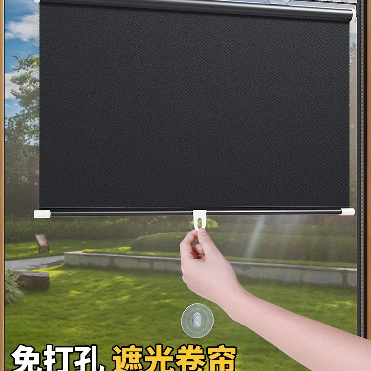 발코니용 완전 차광 롤러 블라인드, 자외선 차단 및 단열 커튼, 흡입 컵형, 펀치 프리, 자유롭게 개폐 가능한 주방 유리 서쪽 햇빛 차단스토어 가기
