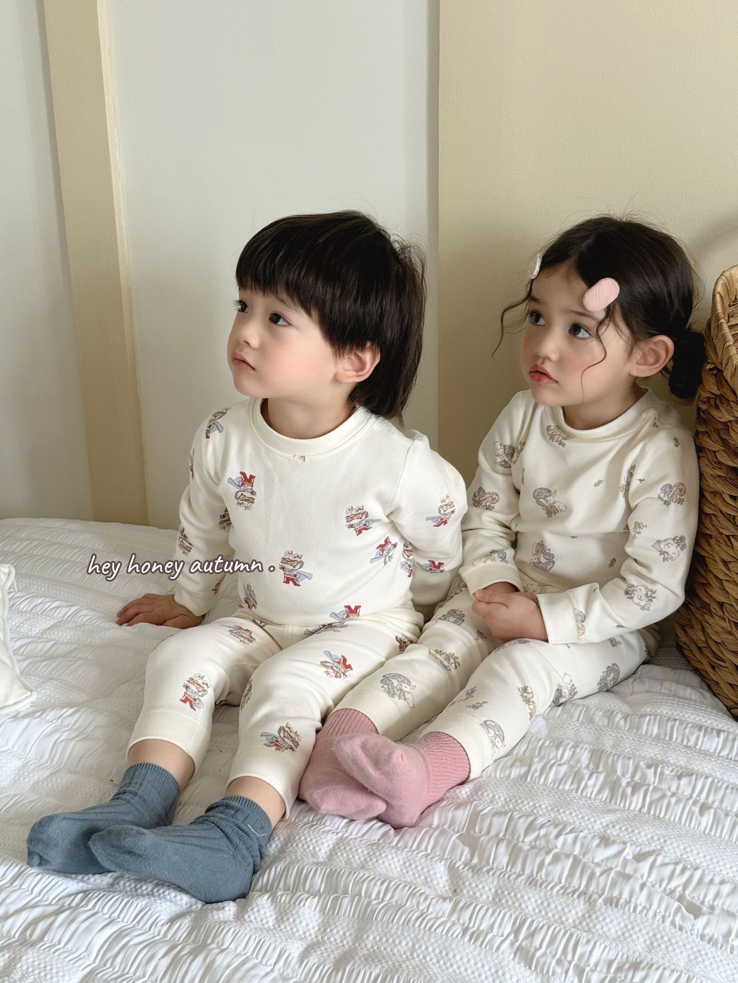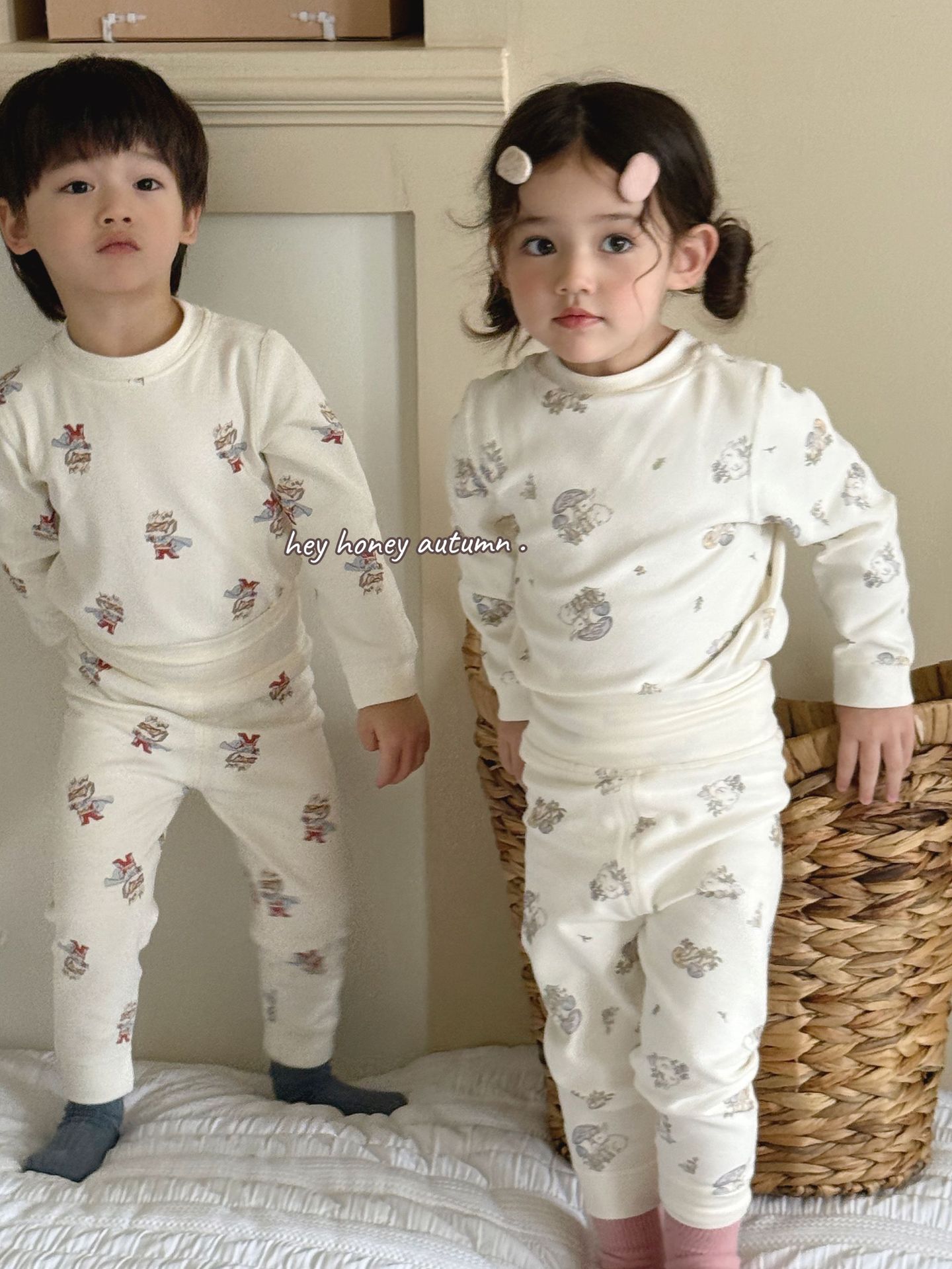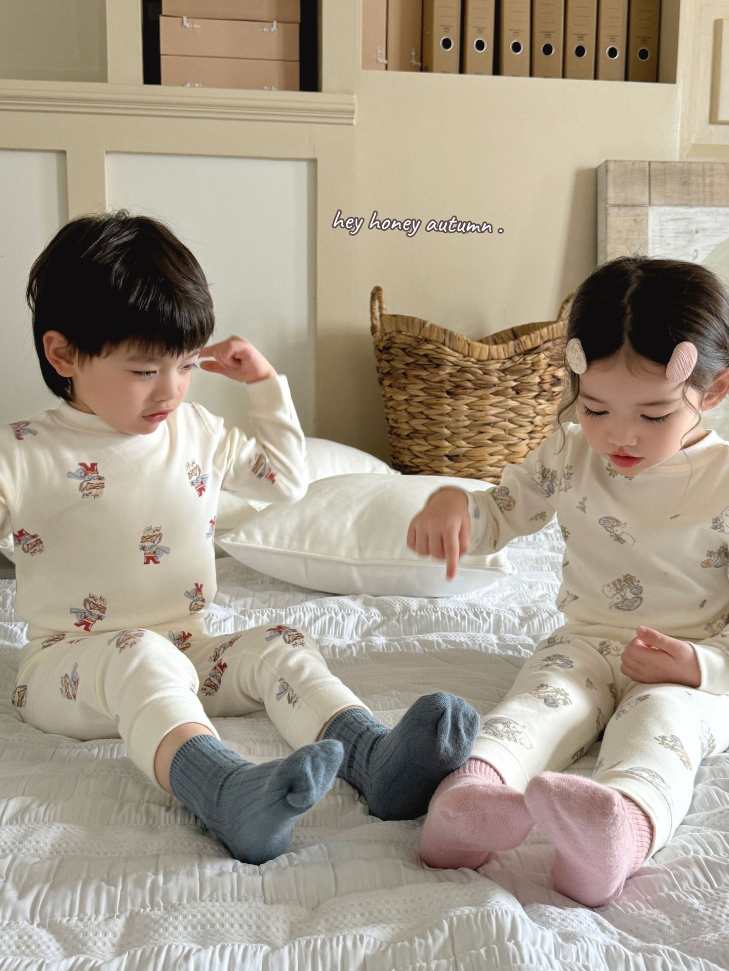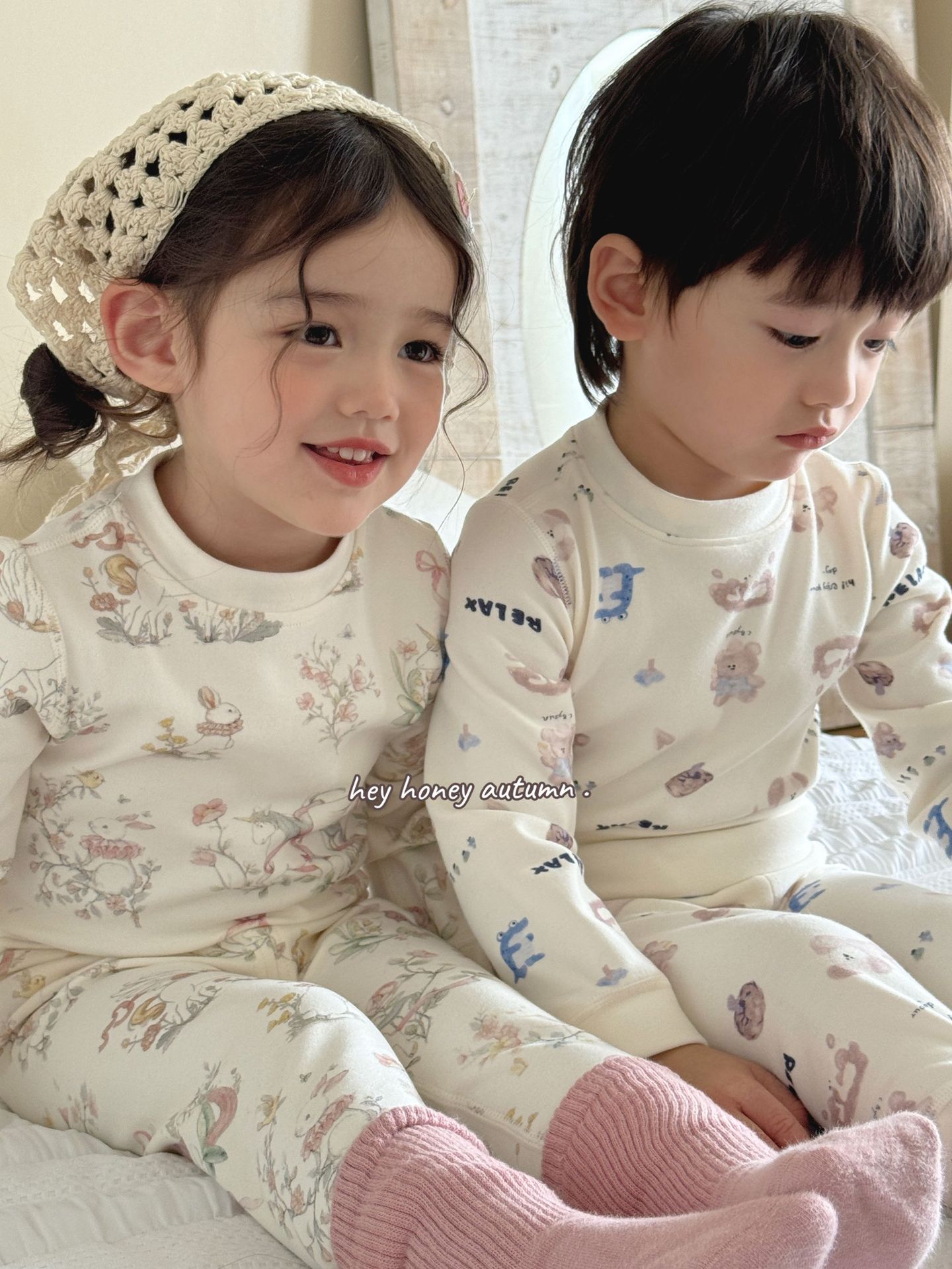 크고 작은 사이즈의 헤이 허니 남아 및 여아용 300g 부드러운 벨벳 가을 옷 및 긴 바지 속옷 세트 아동용 홈 잠옷스토어 가기