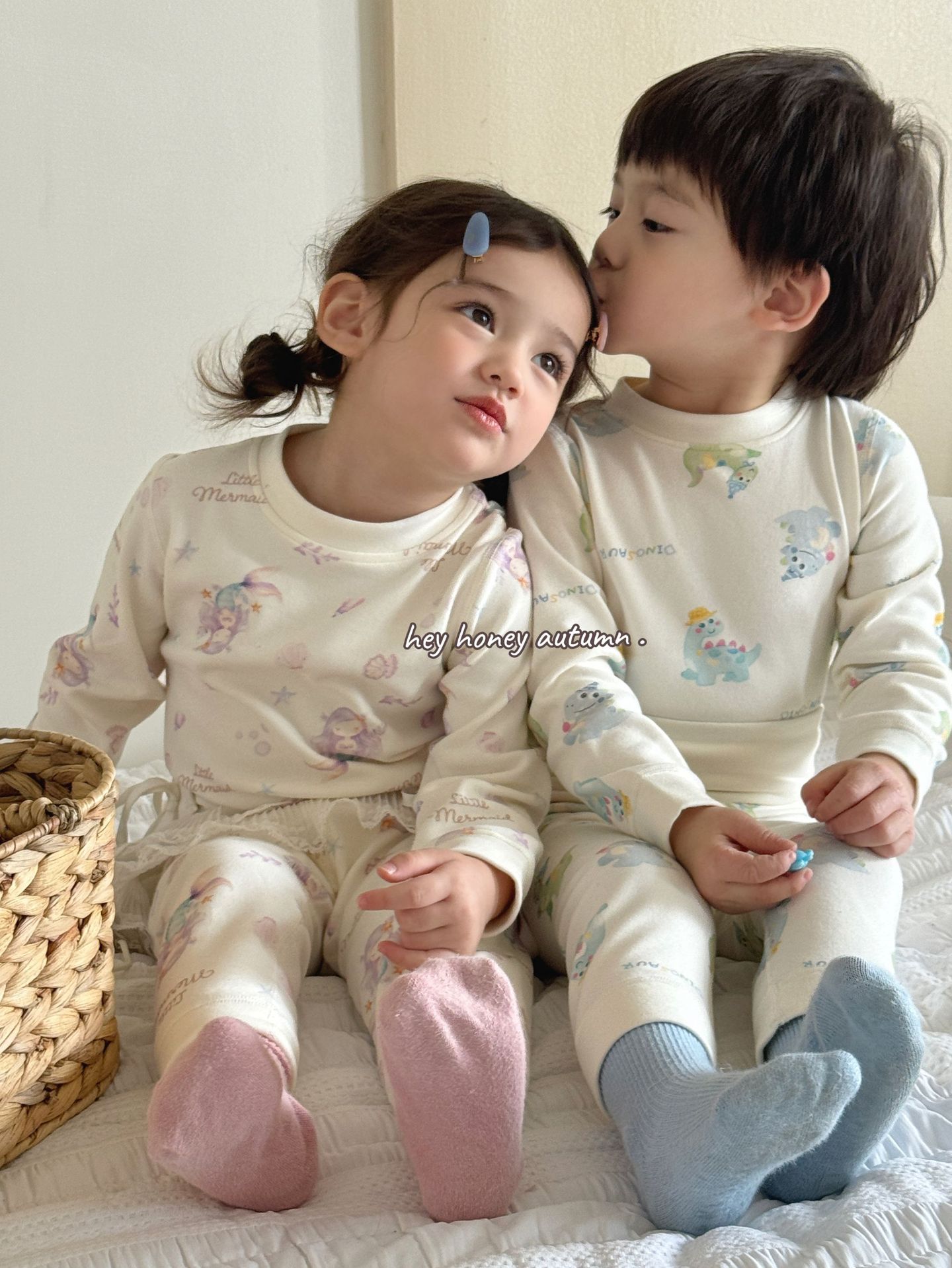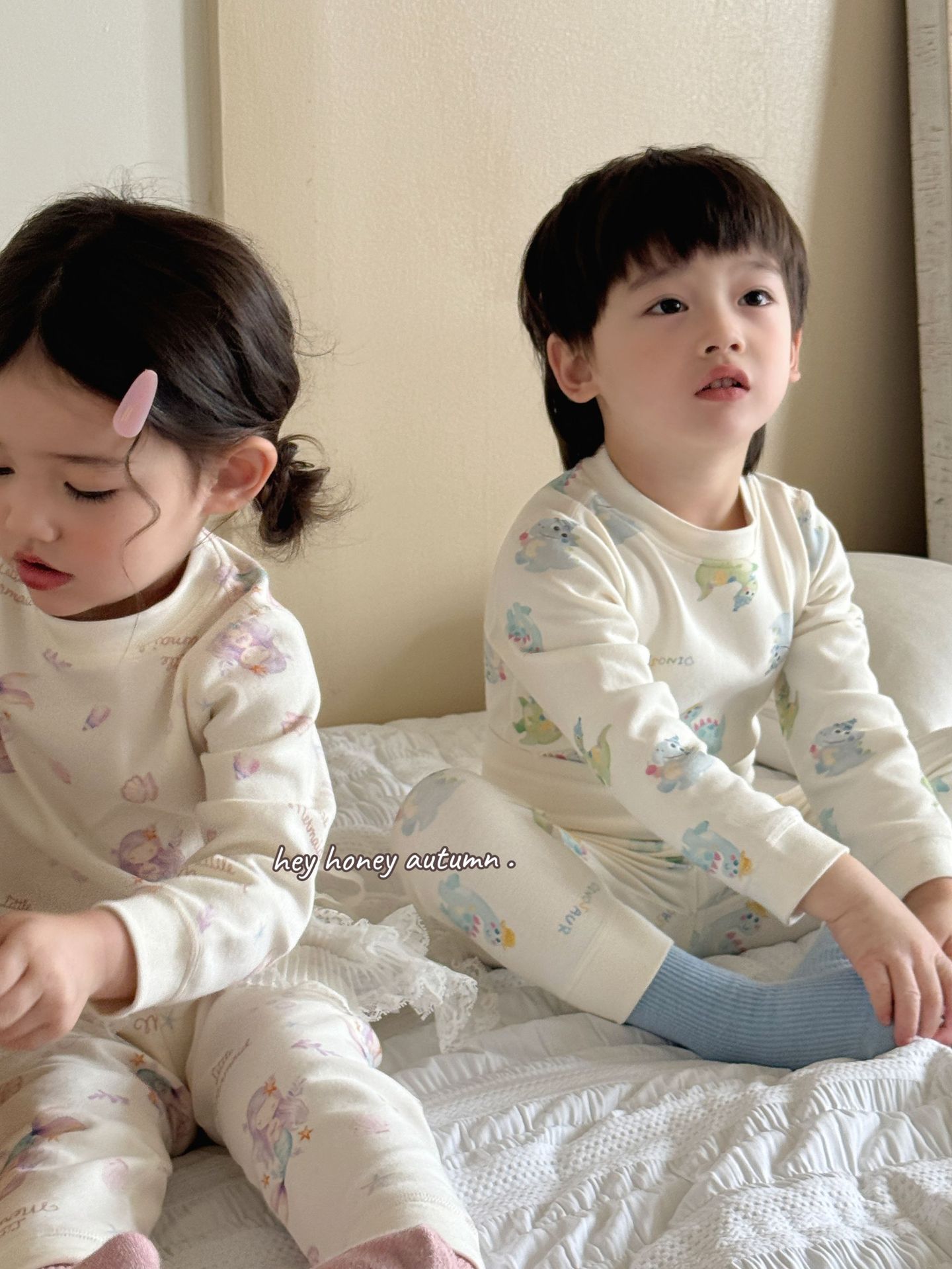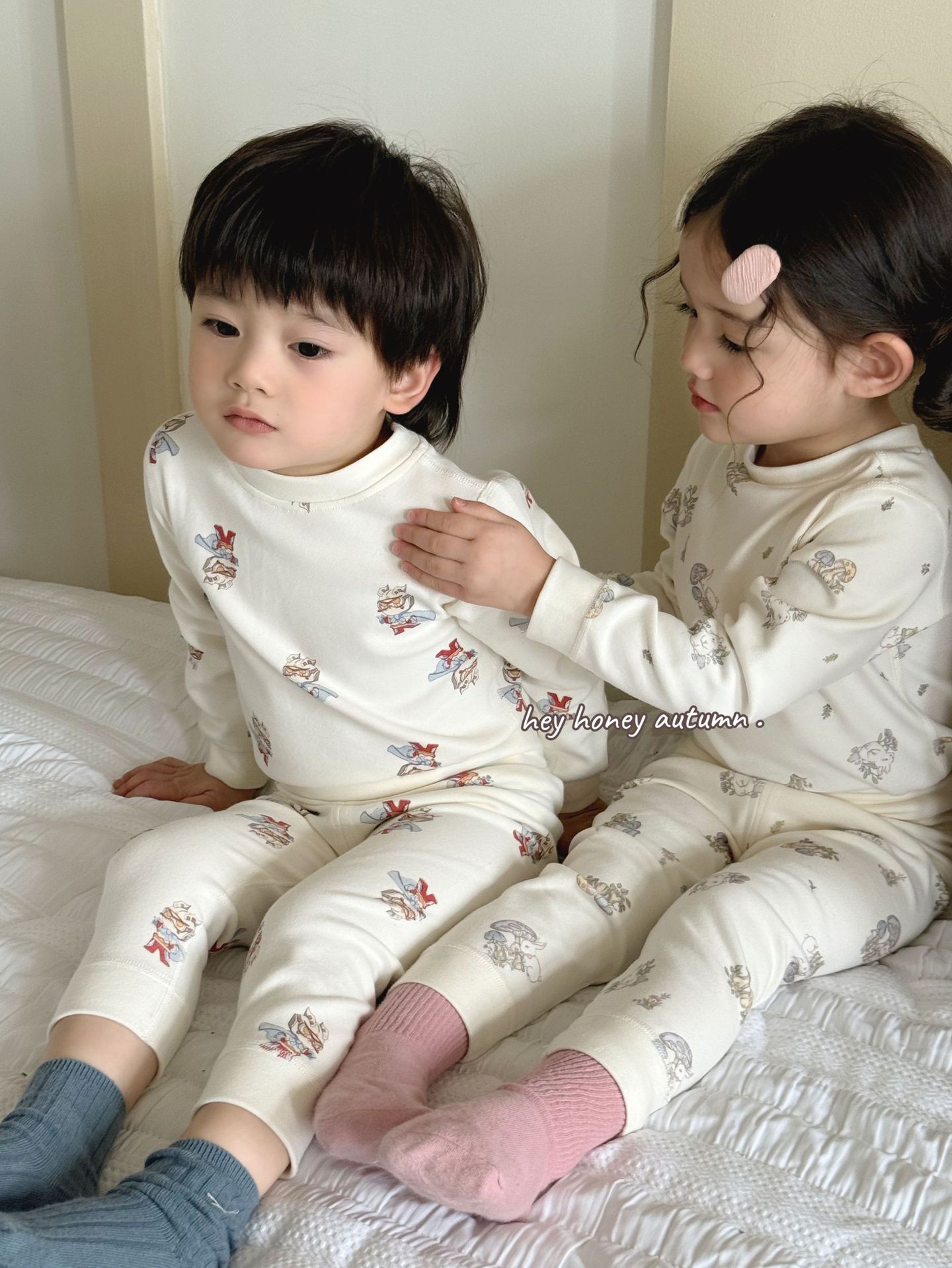 크고 작은 사이즈의 헤이 허니 남아 및 여아용 300g 부드러운 벨벳 가을 옷 및 긴 바지 속옷 세트 아동용 홈 잠옷