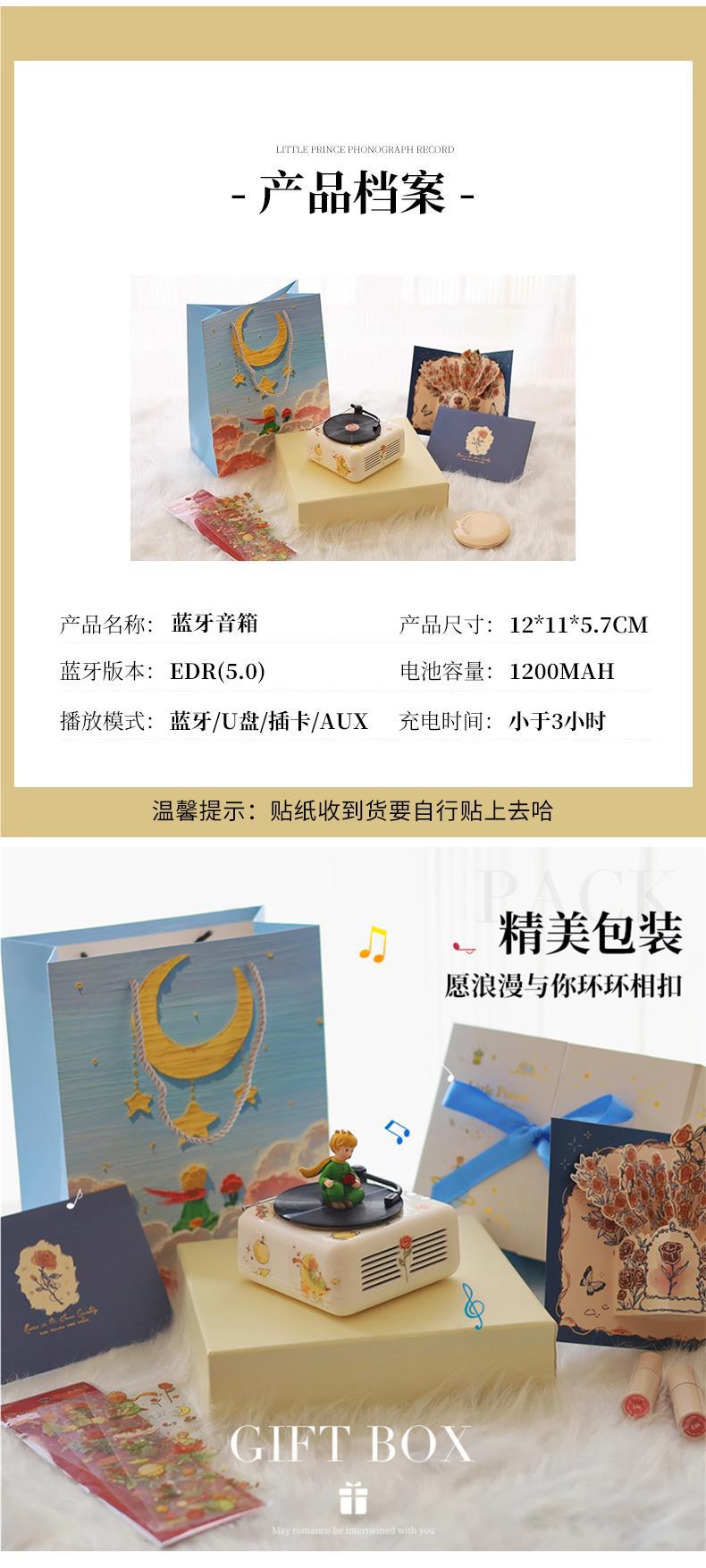 어린 왕자 블루투스 스피커 무선 소형 스피커 홈 레트로 비닐 레코드 남자 친구와 여자 친구 가장 친한 친구 생일스토어 가기