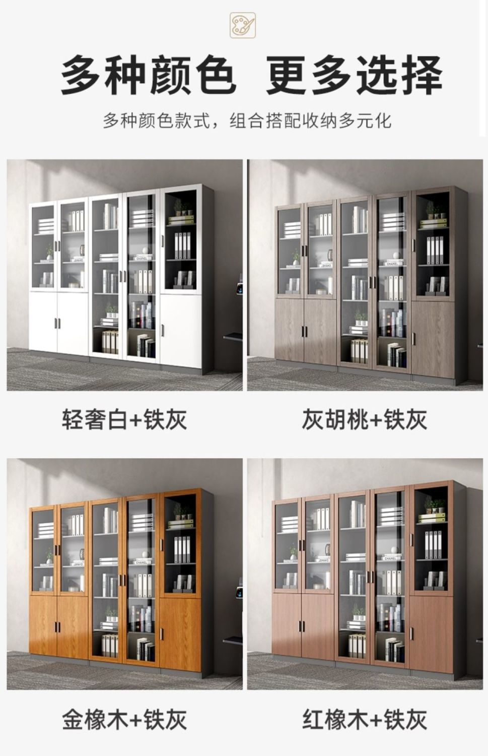 사무실 파일 캐비닛 나무 파일 캐비닛 간단한 현대 유리 책장 도어가있는 바닥 스토리지 캐비닛
