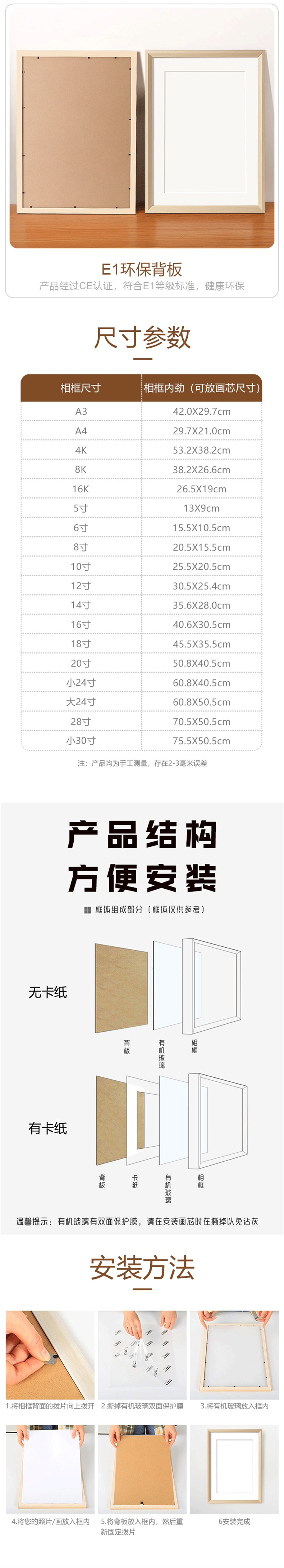 나무 서예 사진 프레임, 빈 프레임, 벽걸이, 거실 서예 및 회화 장식 프레임, 어린이를 위한 A3a4 액자스토어 가기