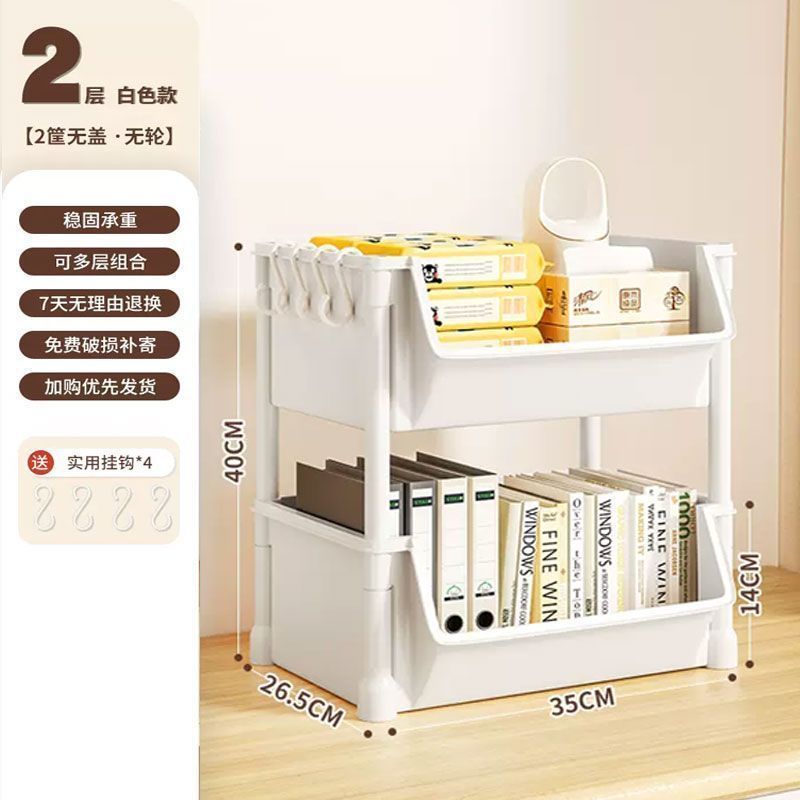 • [탁상수납] 커버 없음 2단(바퀴 없음) + 후크
